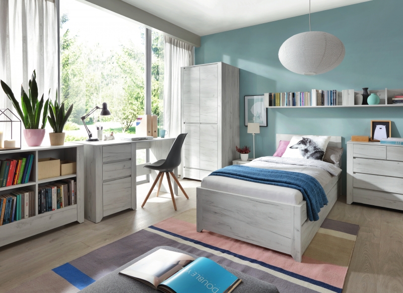 Decentní nábytek řady Angel se hodí pro dětský pokoj miminek a školáků a zároveň do ložnic jejich rodičů. Na první pohled vás série zaujme svým robustním vzhledem a přitom příjemným a jemným provedením v barvě bílého dubu craft. Závěsné police, komody se šuplíky, psací stoly a mnohem víc nabízí nábytek této řady.