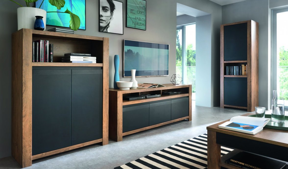 Temný a minimalistický nábytek má svoje fanoušky. Jste jedním z nich? Budete nadšení z hlubokého odstínu dubu Lefkas v kombinaci s černou matnou přední stranou. Praktickým řešením je použití dekorativní drážky v místě rukojeti, díky které se vyhnete nevzhledným otiskům prstů na skříních a vitrínách.