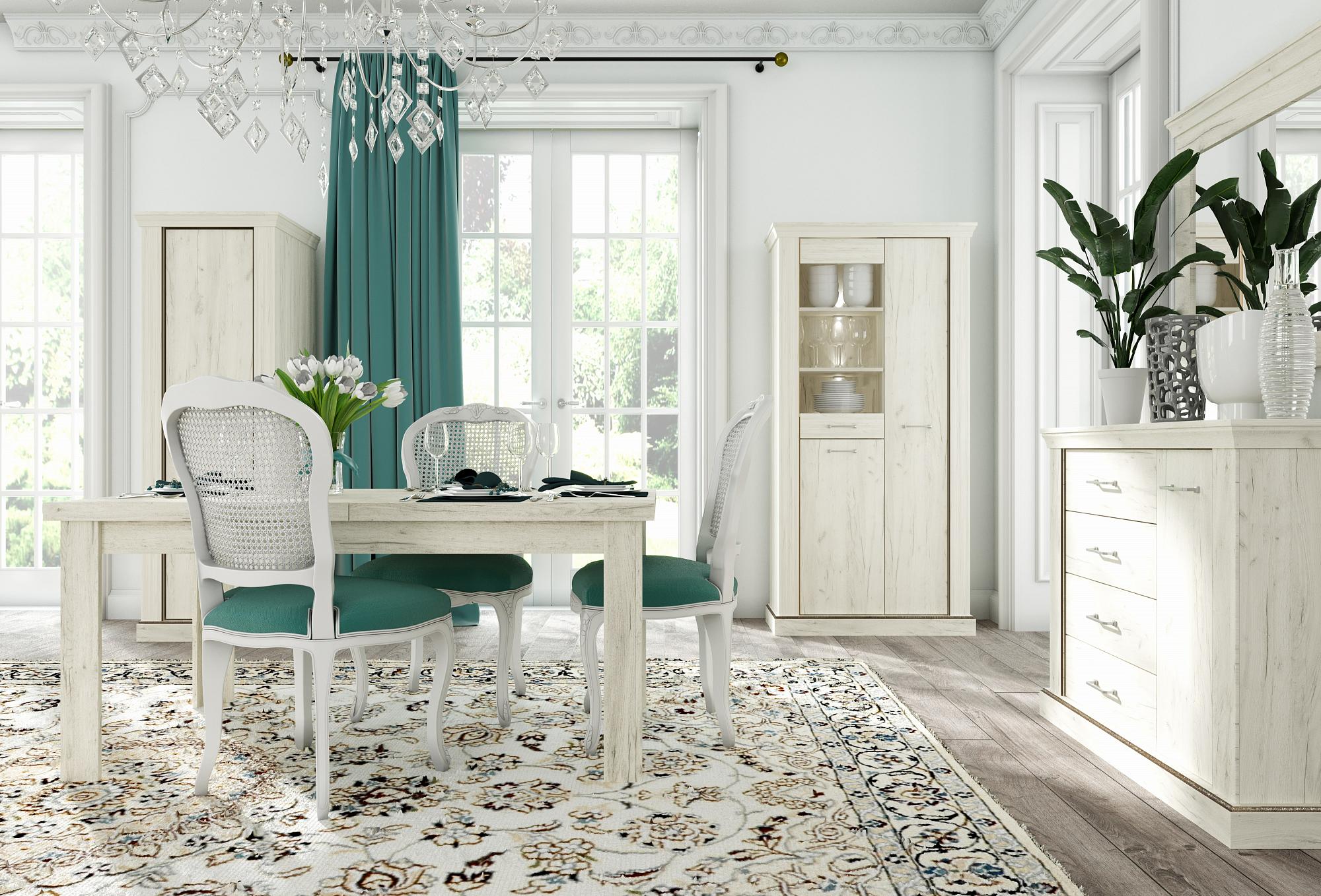 Široké boky a ozdobné antické prvky připomínají řecké sloupy. Interiéru tak dodají luxusní nádech. Ze série vybírejte jídelní židle, skříně i komody. Osvěžte je bytovými doplňky s krystalky, zvolte světlé péřové polštářky a další originální vybavení, díky kterému vytvoříte v místnosti styl s nádechem glamour. Pečlivě vybrané LED osvětlení krásně doplní tuto atmosféru. Hledáte inspiraci? Podívejte se na naše realizace!