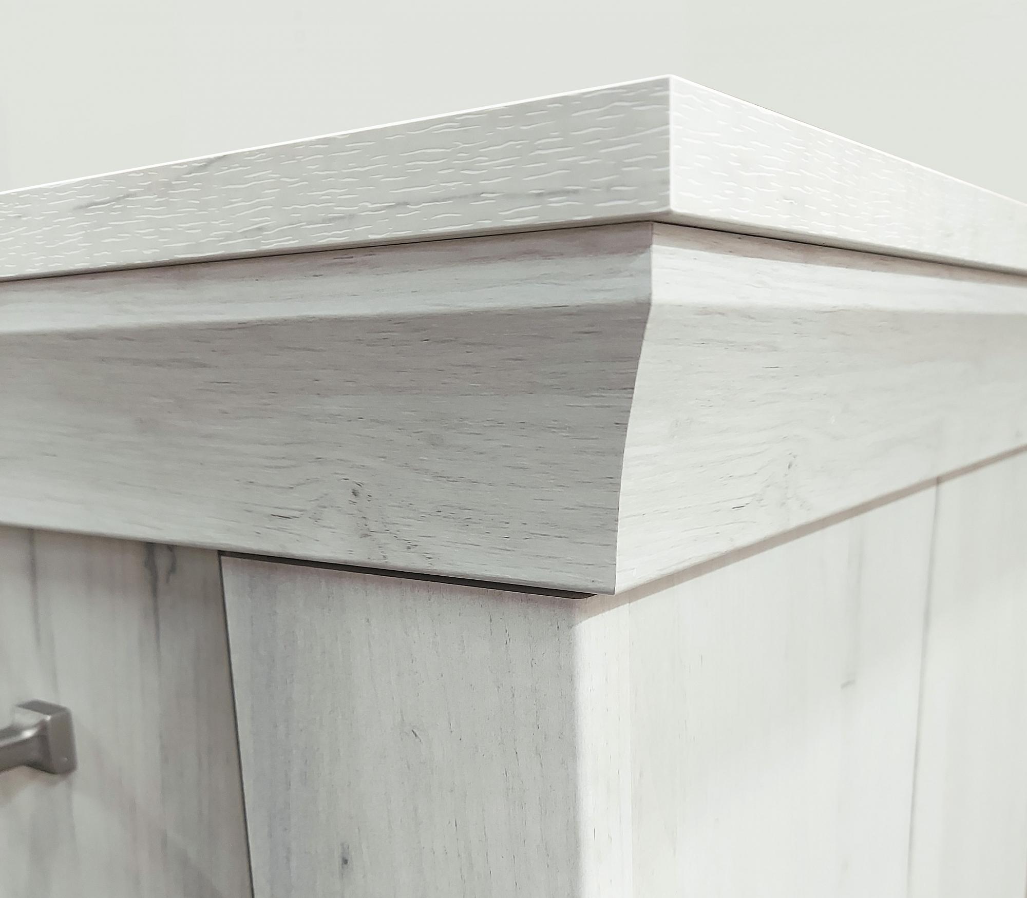 Pro výrobu tohoto nábytku se používají laminované desky o tloušťce 16 mm s ABS hranami, kovové úchytky mají rozteč 128 mm a záda jsou z HDF. Dvířka jsou opatřeny systémem tlumeného dovírání a zásuvky se otevírají do plného výsuvu.