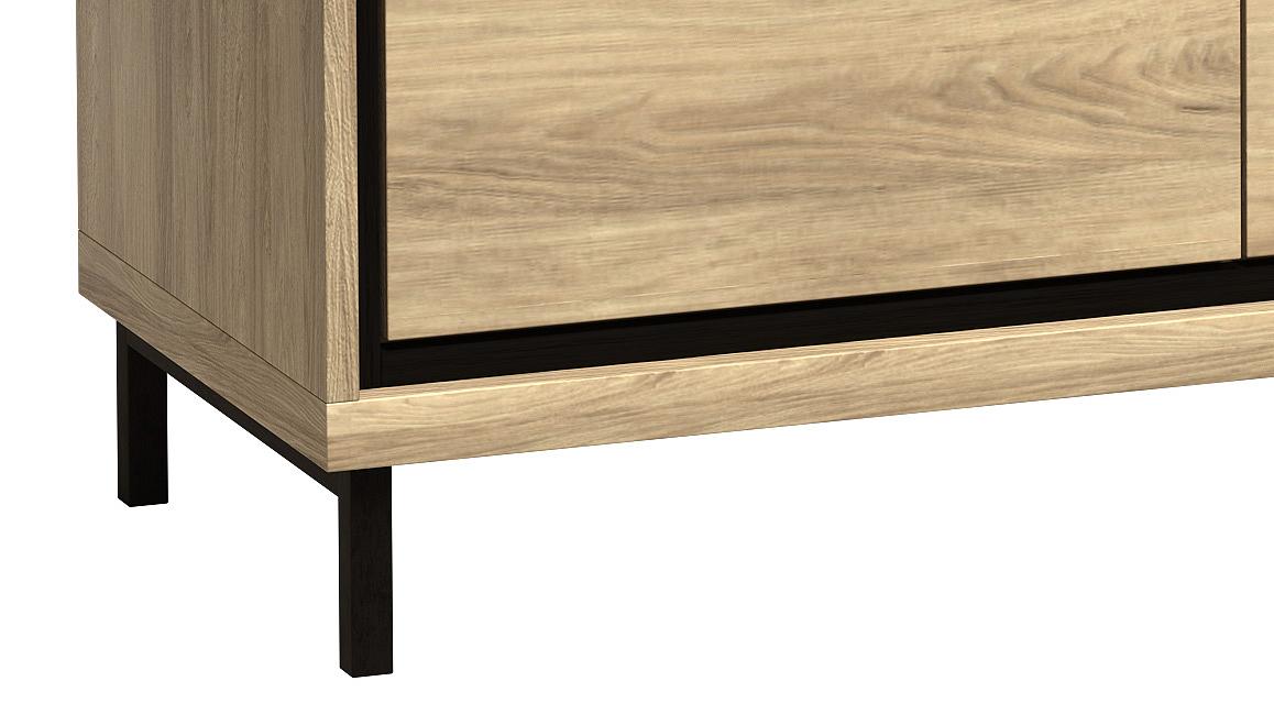 Řada Mediolan je vyrobená z lamino desek o tloušťce 16 a 32 mm, má ABS hrany, dřevěné části, záda z HDF a kovové úchytky s roztečí 128 mm. Dvířka jsou opatřená mechanismem pro tiché dovírání. Zásuvky jsou bez úchytek, otevírají se zmáčknutím (push to open) do plného výsuvu. Vitríny jsou vyplněné tvrzeným sklem. Nábytek můžete instalovat na černé nožky o výšce 10 cm.