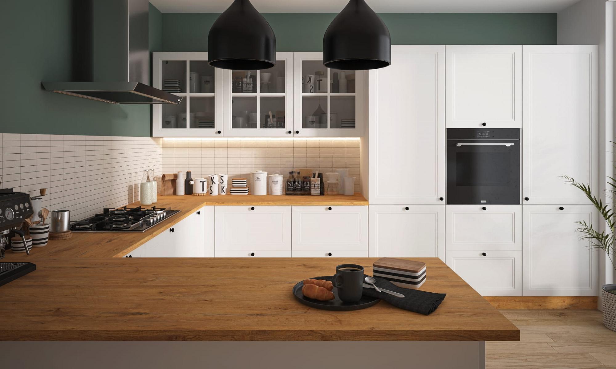 Kuchyně Forli od Veroniky z Děčína v lakovaném provedení zaujme čistým designem a kvalitním zpracováním. Dvířka v bílé barvě LP151 a bílý korpus doplňuje pracovní deska s panelem v dekoru Dub Hikora mat 3730. Kuchyně je vybavena pojezdy Hettich, černým granitovým dřezem Ada včetně baterie a řadou praktických doplňků. Cena kuchyně je 110 000 Kč a montáže je 19 000 KčMontáž byla provedena v roce 2025.