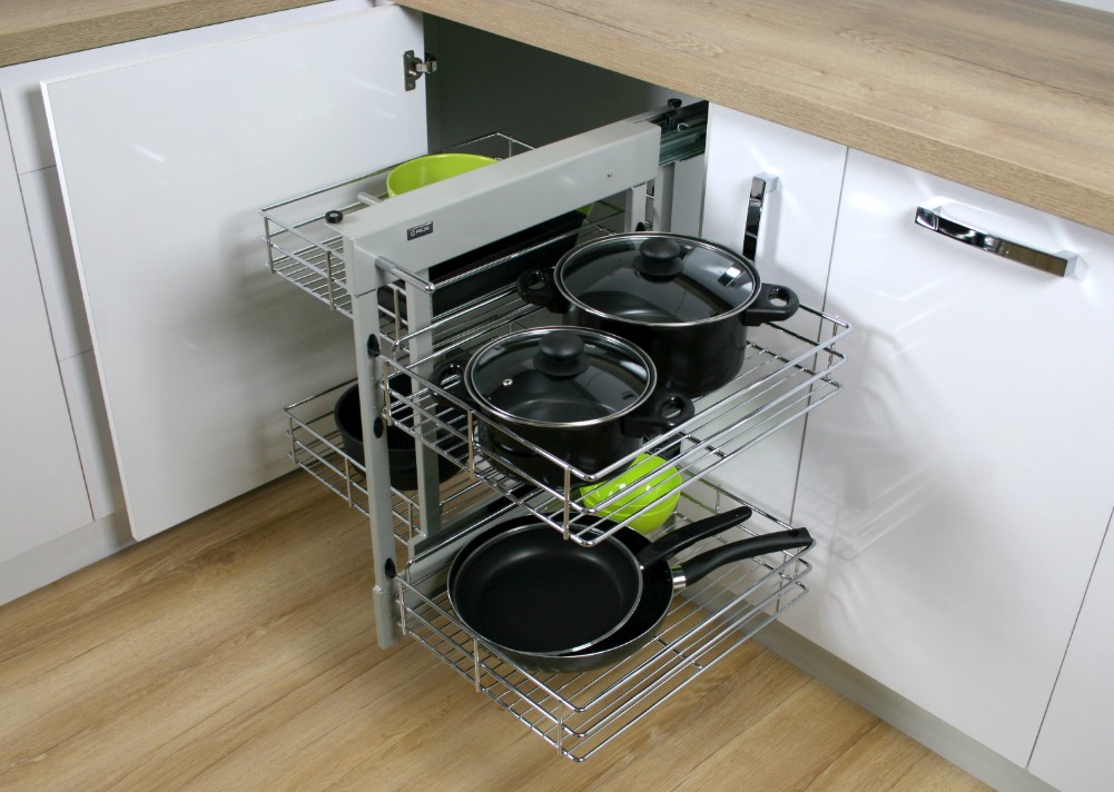 Určený pro rohové kuchyňské skříňky typu D13U. Vyrobeno z nerezu.