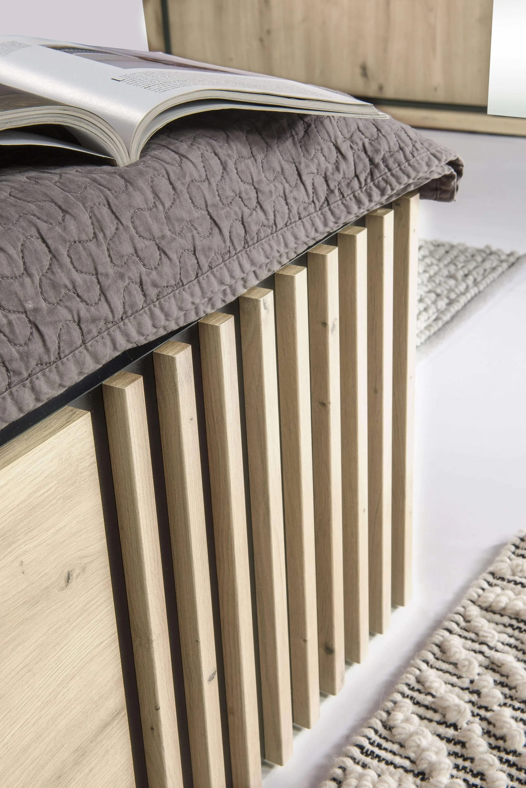 Výrazným prvkem nábytku Cali v dekoru dub artisan jsou ozdobné lamely na černém matném pozadí. Jedna z lamel je upravená a slouží jako stylová úchytka, která nijak nenarušuje celkový design. Moderní interiér v přírodních barvách vytvoříte jednoduše použitím dekorativních panelů. Vybírejte pro váš domov předsíňovou stěnu, konferenční stolek, komody a další typy nábytku.