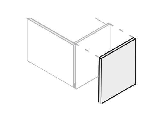 Ukončovací se bok se obvykle dodává v barvě korpusů, ale může být i v barvě dvířek (cena za m2 od 2 200 Kč do 4 900 Kč, hloubka podle typu dvířek 16 - 19mm)