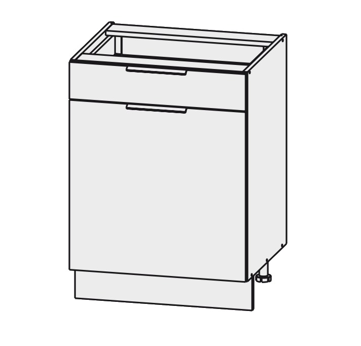 Korpusy jsou vyrobeny z kvalitní LTD desky 16 mm v bílé barvě. Kování s tlumeným dovíráním dvířek i zásuvek typu Metalbox GTV. Kovové úchytky (rozteč 200 mm), sokly a kování jsou v ceně. Skříňky stojí na nastavitelných nožkách. Záda jsou ze sololitu a ve skříňkách (kromě dřezových) jsou police s nosností 14–24 Kg. Dvířka lamino 18 mm s ABS hranami.