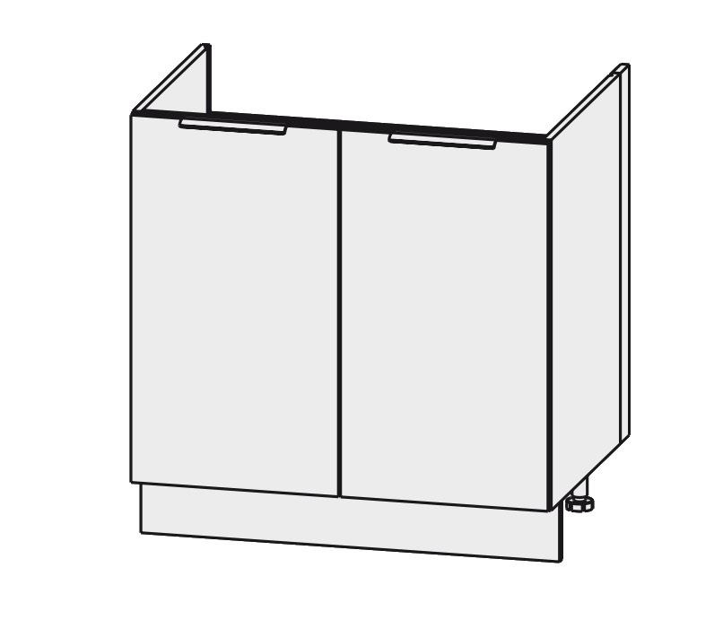 Korpusy jsou vyrobeny z kvalitní LTD desky 16 mm v bílé barvě. Kování s tlumeným dovíráním dvířek i zásuvek typu Metalbox GTV. Kovové úchytky (rozteč 200 mm), sokly a kování jsou v ceně. Skříňky stojí na nastavitelných nožkách. Záda jsou ze sololitu a ve skříňkách (kromě dřezových) jsou police s nosností 14–24 Kg. Dvířka lamino 18 mm s ABS hranami.