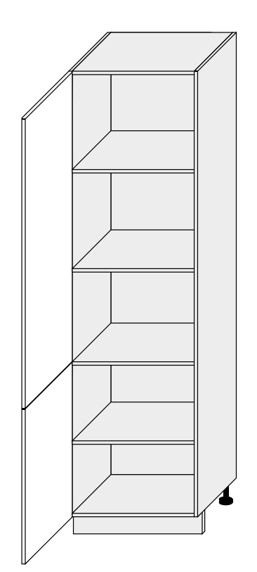 Možnost regulace výšky v případě nerovných podlah. Výška kuchyně s pracovní deskou 3,8 cm je 86 cm (nožky 10 cm) nebo 91 cm (nožky 15 cm). Sokly 10 cm na zakrytí nožek jsou součástí balení. Pokud vyberete nožky 15 cm, budeme vás kontaktovat kvůli výrobě soklů na míru.