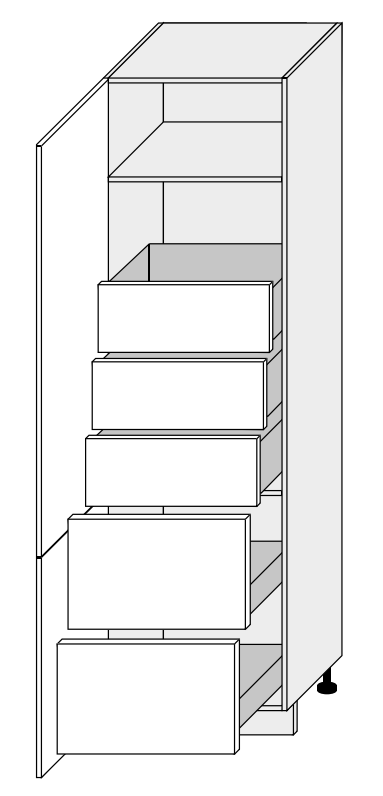 Výška je uvedena vč. 10cm nožek. Výšky zásuvek: 1×118 mm, 2×86 mm, 2×199 mm