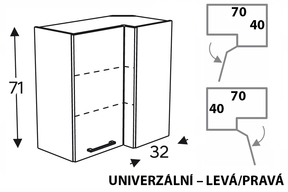 - lze sestavit jako pravá (70×40) nebo jako levá (40×70)