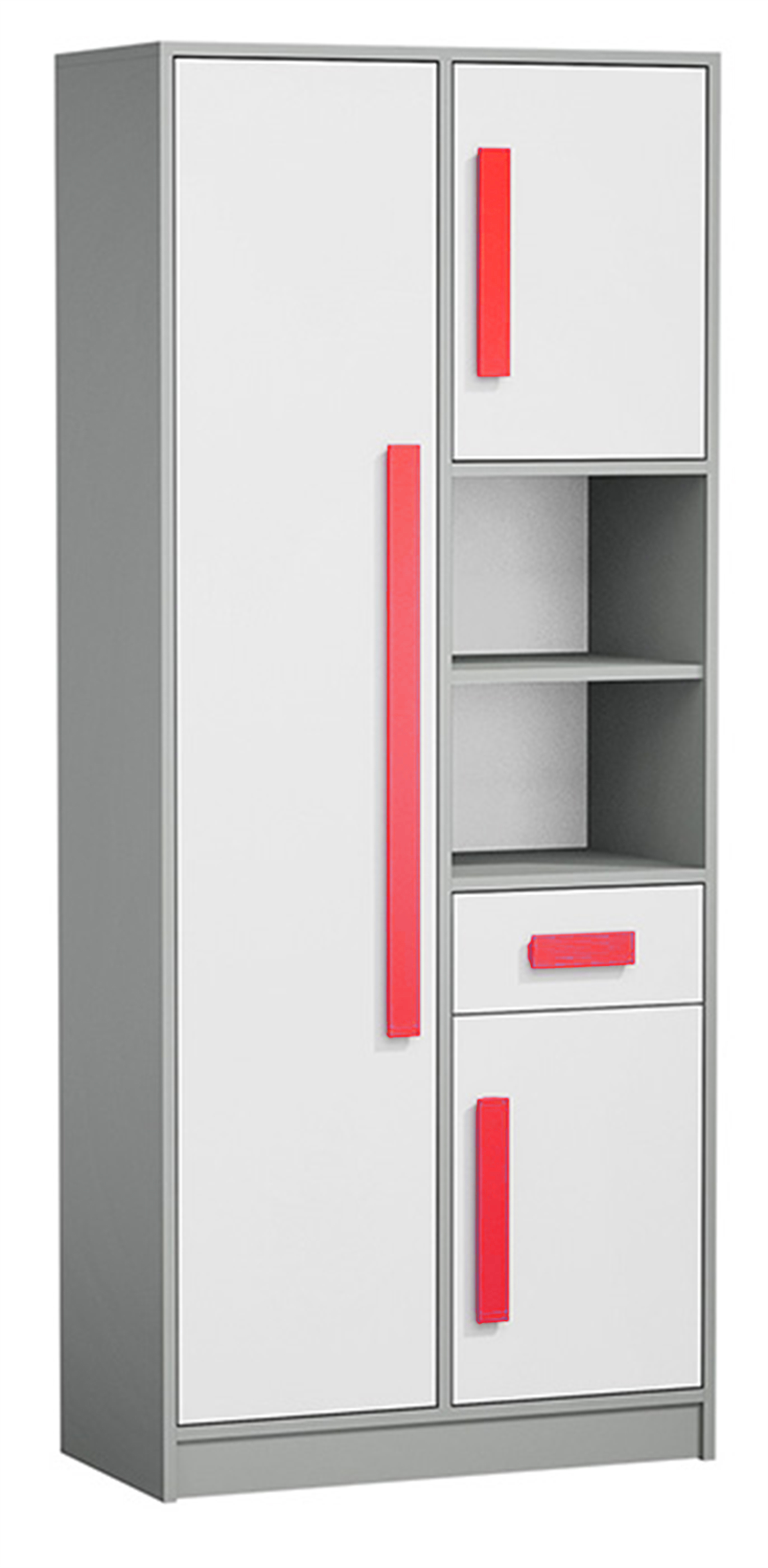 Knihovna Giro 03 o šířce 80 cm nabízí praktické a stylové úložné řešení. Kombinuje uzavřené skříňky s otevřenými policemi, ideální pro uložení knih a dekorací. Knihovna je vyrobena z kvalitní nábytkové desky, která zajišťuje dlouhou životnost a odolnost.
