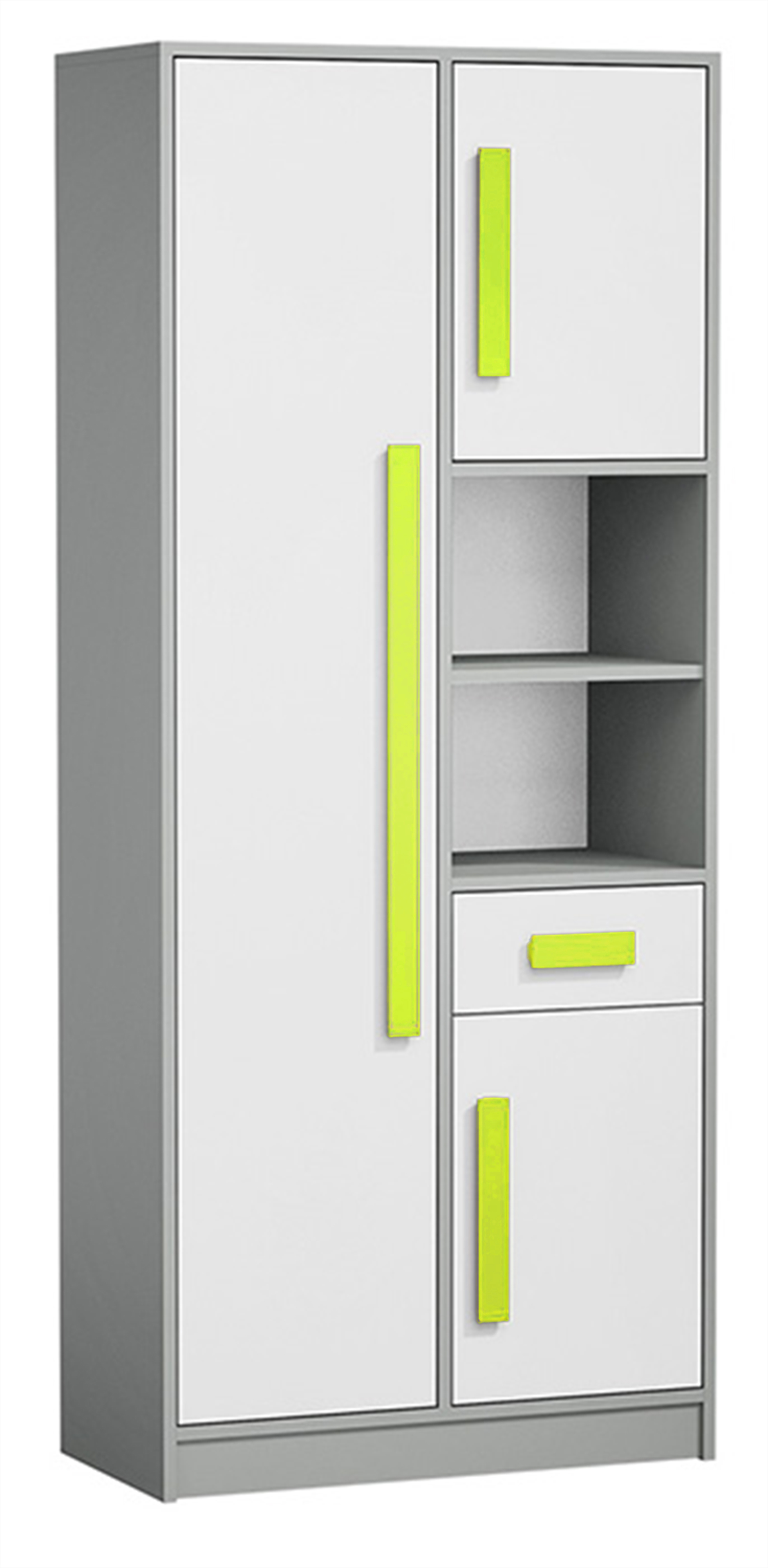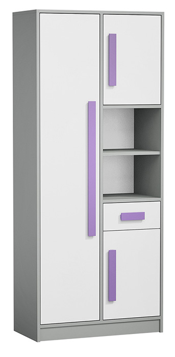 Dětská sestava Giro má barevná provedení, která zahrnují bílou přední stranu, antracitové tělo a plastové rukojeti v různých barvách (zelená, červená, modrá, fialová, šedá). Každý produkt v sestavě je vyroben z laminované desky o tloušťce 16 mm s ABS hranami, kuličkovým vedením v zásuvkách. Hodí se do dětského nebo studentského pokoje pro holky i pro kluky.