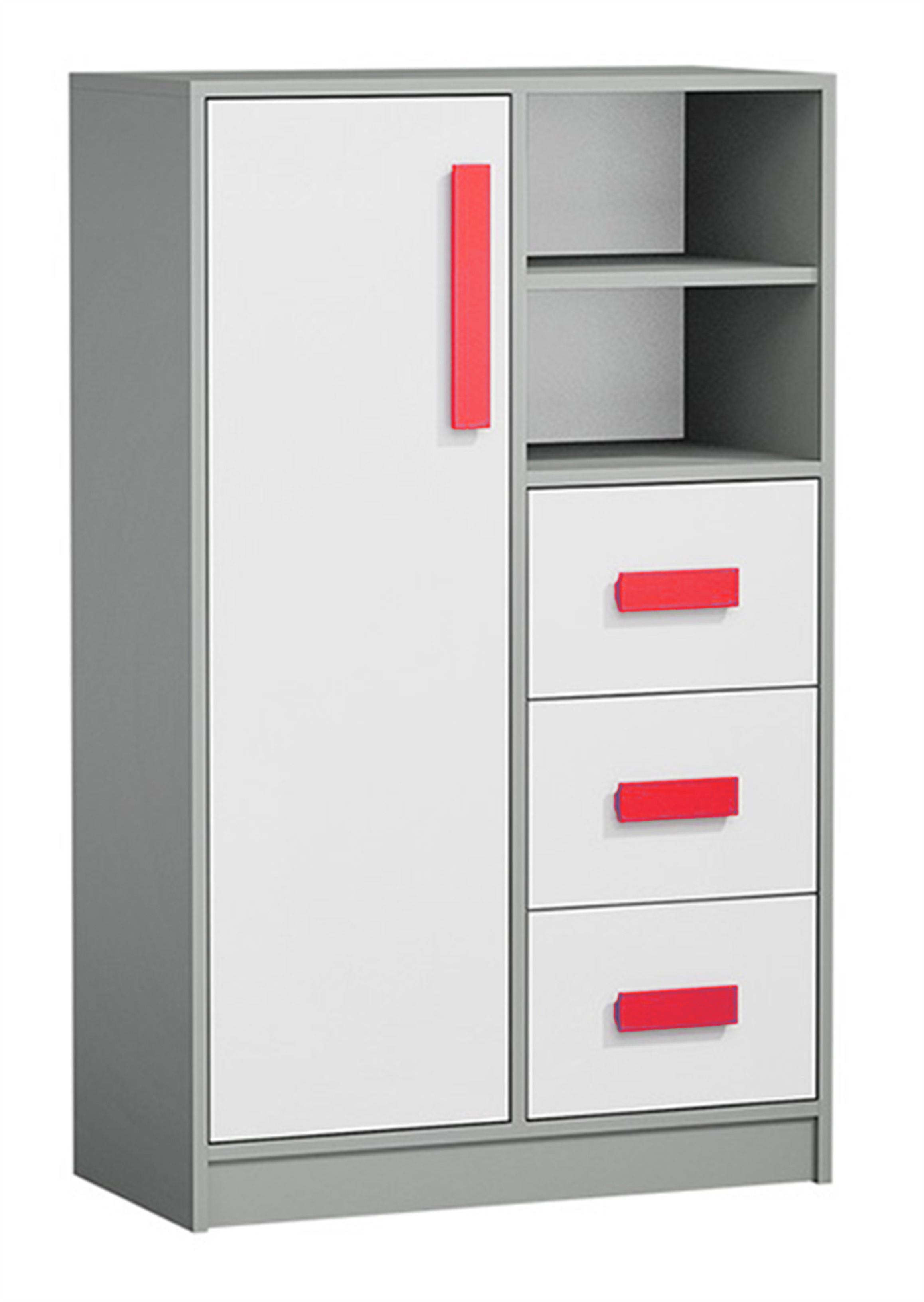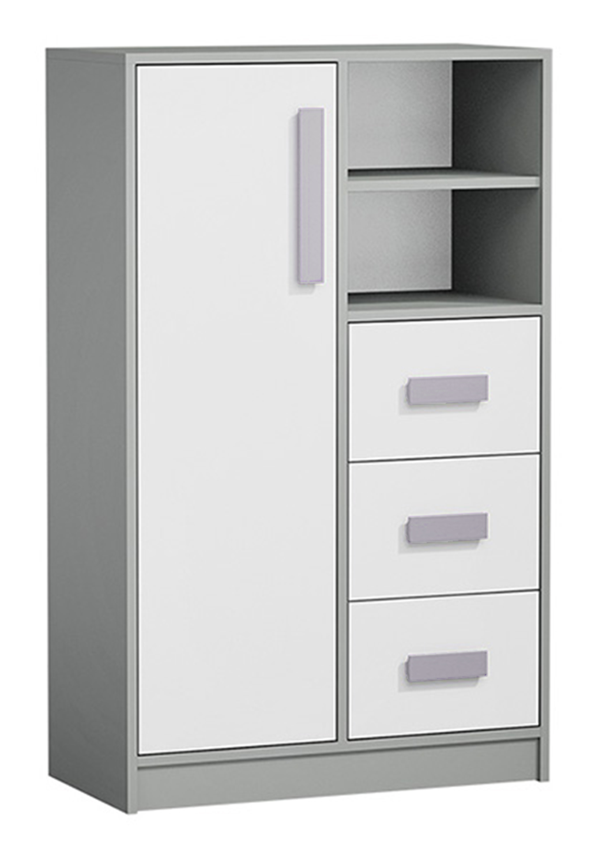 Komoda 80 vysoká nabízí kombinaci uzavřených skříněk, otevřených polic a zásuvek, což poskytuje dostatek úložného prostoru pro různé potřeby. Je vyrobena z kvalitní nábytkové desky, která zajišťuje dlouhou životnost a odolnost. Moderní a stylový vzhled, díky čemuž se komoda hodí do různých interiérů.