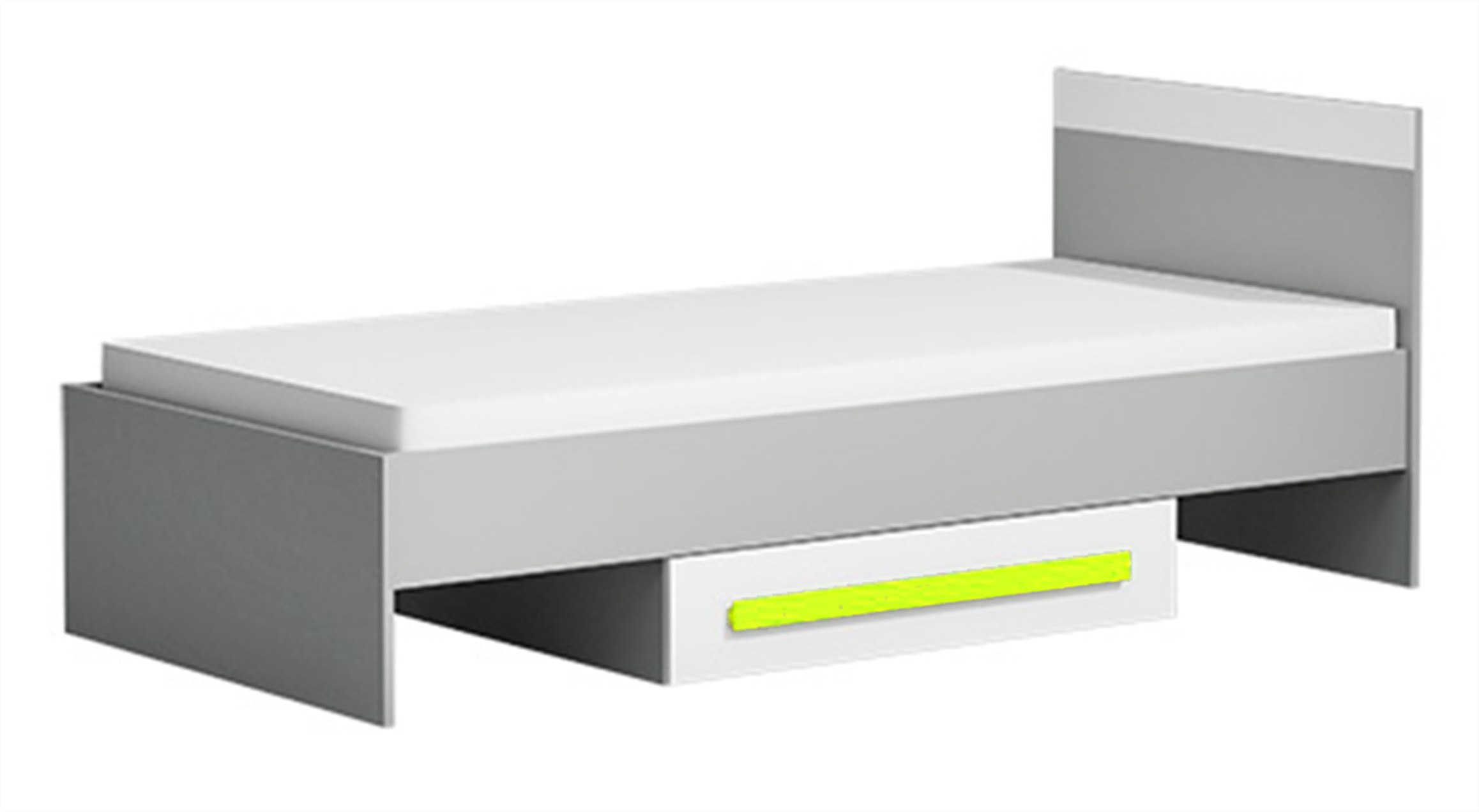 Postel 90 Giro 12 je moderní a praktické lůžko s úložným prostorem ve formě výsuvného šuplíku. Vyrobena z kvalitní nábytkové desky, která zajišťuje dlouhou životnost a odolnost. Ideální volba pro dětské nebo studentské pokoje. Matrace není součástí postele.