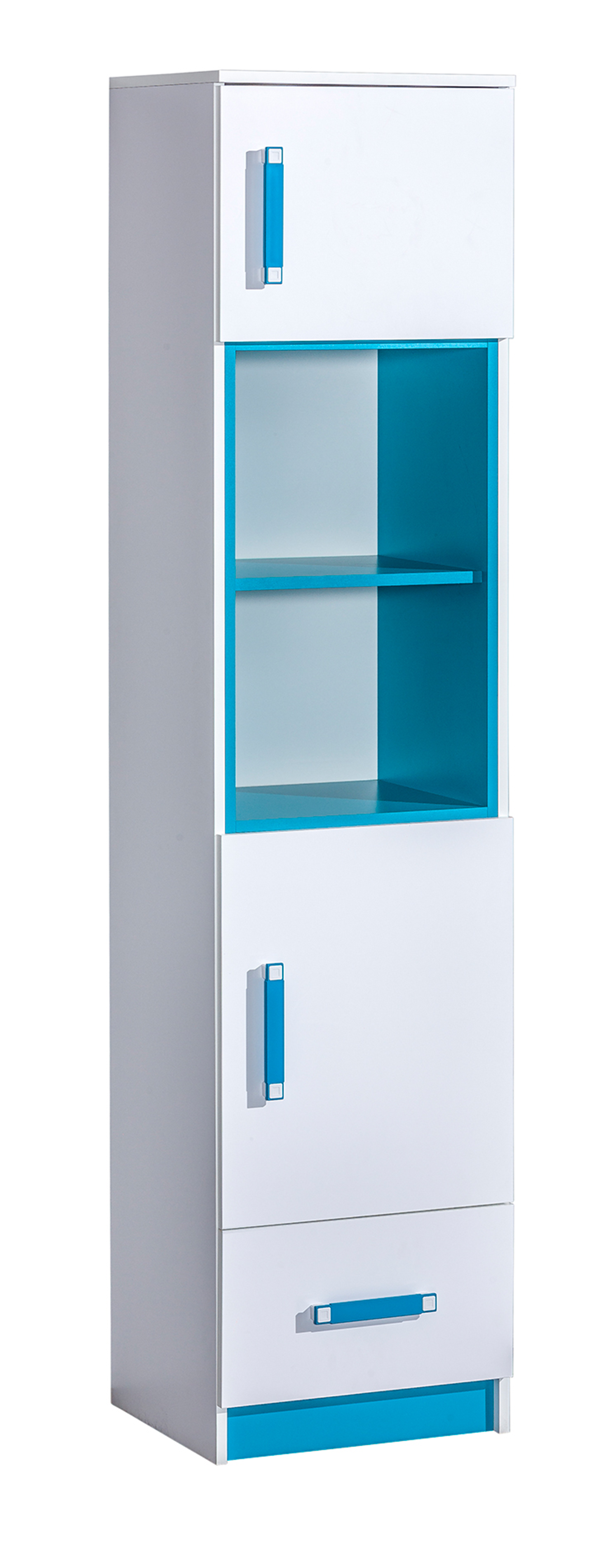 Knihovna 45 Trifo 04 nabízí kombinaci uzavřených skříněk, otevřených polic a spodní zásuvky, což zajišťuje praktické úložné prostory. Moderní design dodává knihovně atraktivní vzhled. Vyrobena z kvalitní nábytkové desky, zajišťuje odolnost a dlouhou životnost. Skvěle se hodí do dětských nebo studentských pokojů pro uložení knih, hraček či dekorací.