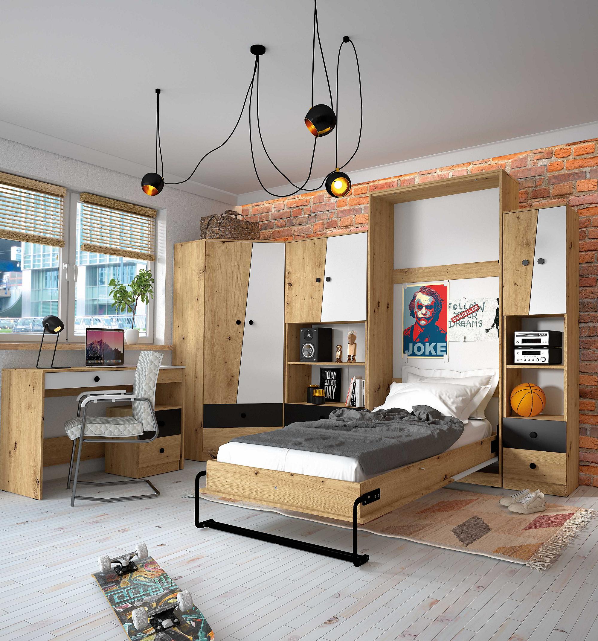 Dětská sestava Neva představuje moderní a praktické řešení pro dětské a studentské pokoje. Nábytek je vyroben z kvalitní laminované desky v přírodním dekoru dubu, doplněný o kontrastní bílé prvky. Díky chytrému úložnému prostoru, který zahrnuje skříně, poličky a komody, poskytuje dostatek místa pro uspořádání oblečení, knih i hraček. Robustní konstrukce a jednoduchý design zajišťují, že se nábytek hodí do pokoje pro holky i pro kluky. Sestava Neva nabízí nejen funkčnost, ale i stylový vzhled, který vydrží růst s vaším dítětem.