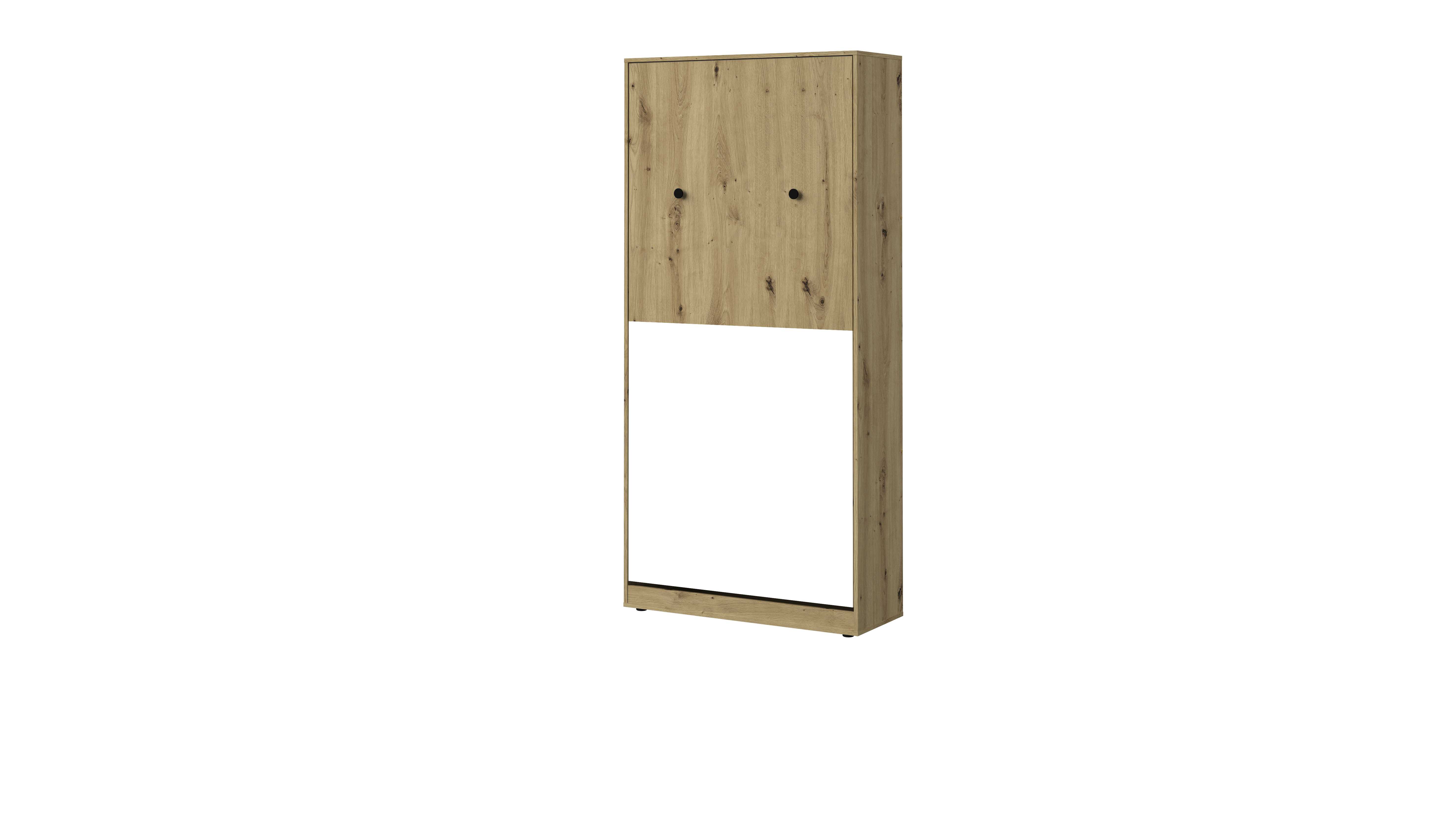 Vertikální pololůžko Neva 15 je ideálním řešením pro úsporu prostoru v menších místnostech. Elegantní design v kombinaci dřeva a bílých prvků dodává moderní vzhled. Lůžko je snadno rozkládací a díky bezpečnostním popruhům je matrace pevně přichycená. V zavřeném stavu působí jako stylová skříň a ušetří cenné místo v interiéru. Matrace není součástí.