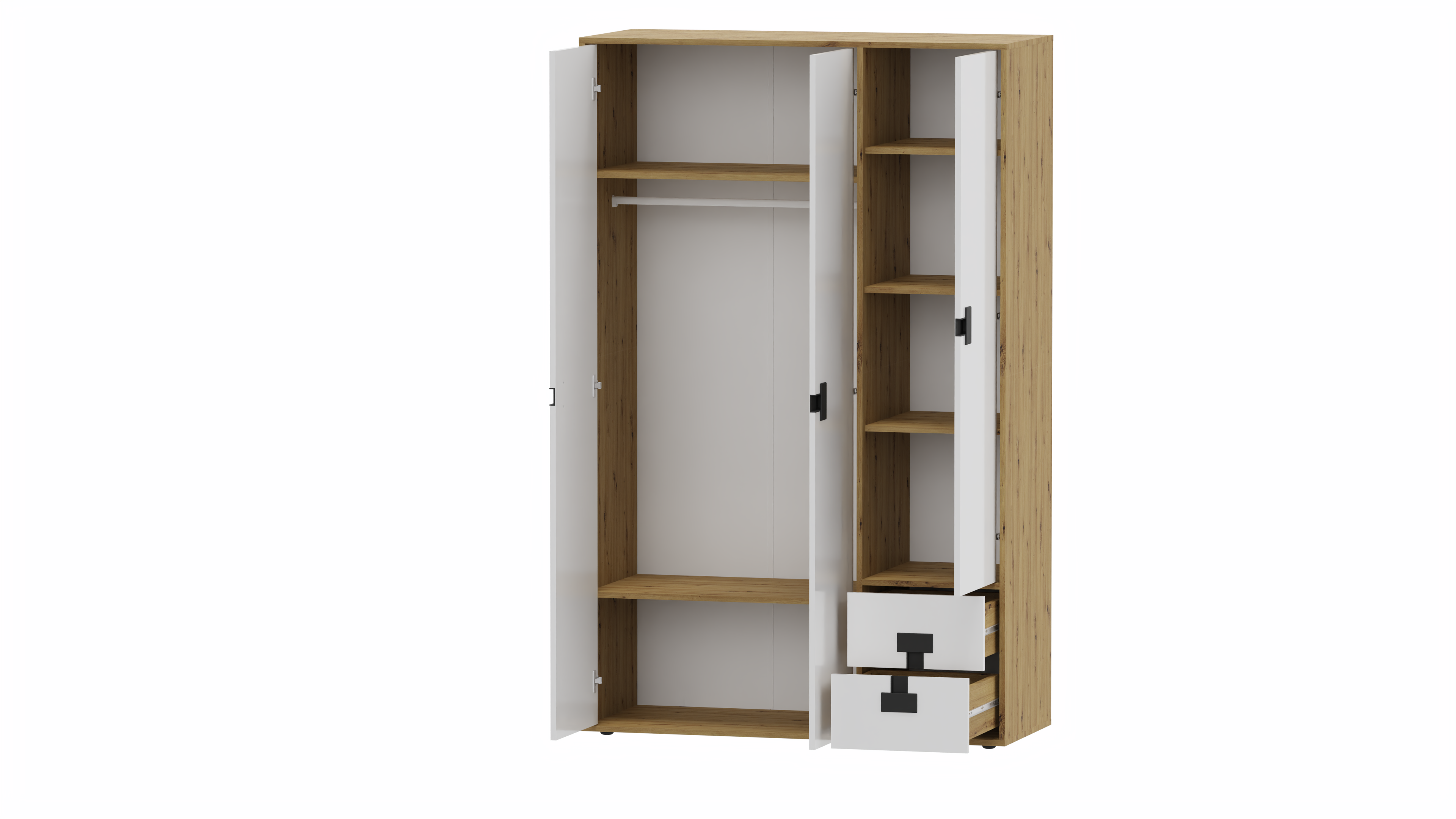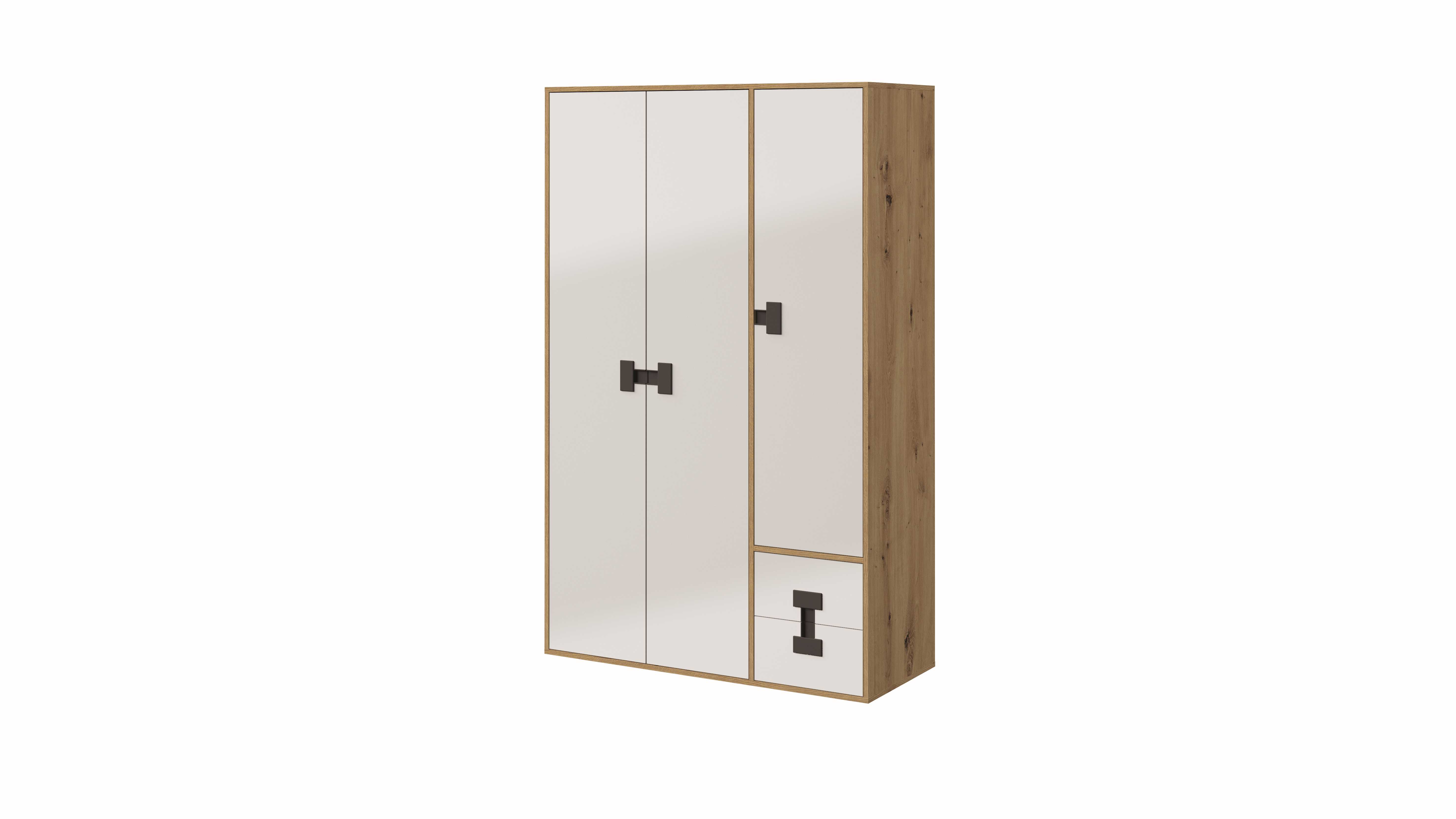 Skříň 120 Inex 04 je prostorná a stylová šatní skříň s moderním designem. Skříň nabízí praktické úložné prostory včetně polic, zásuvek a závěsné části, takže je ideální pro organizaci oblečení a doplňků v ložnici nebo šatně.