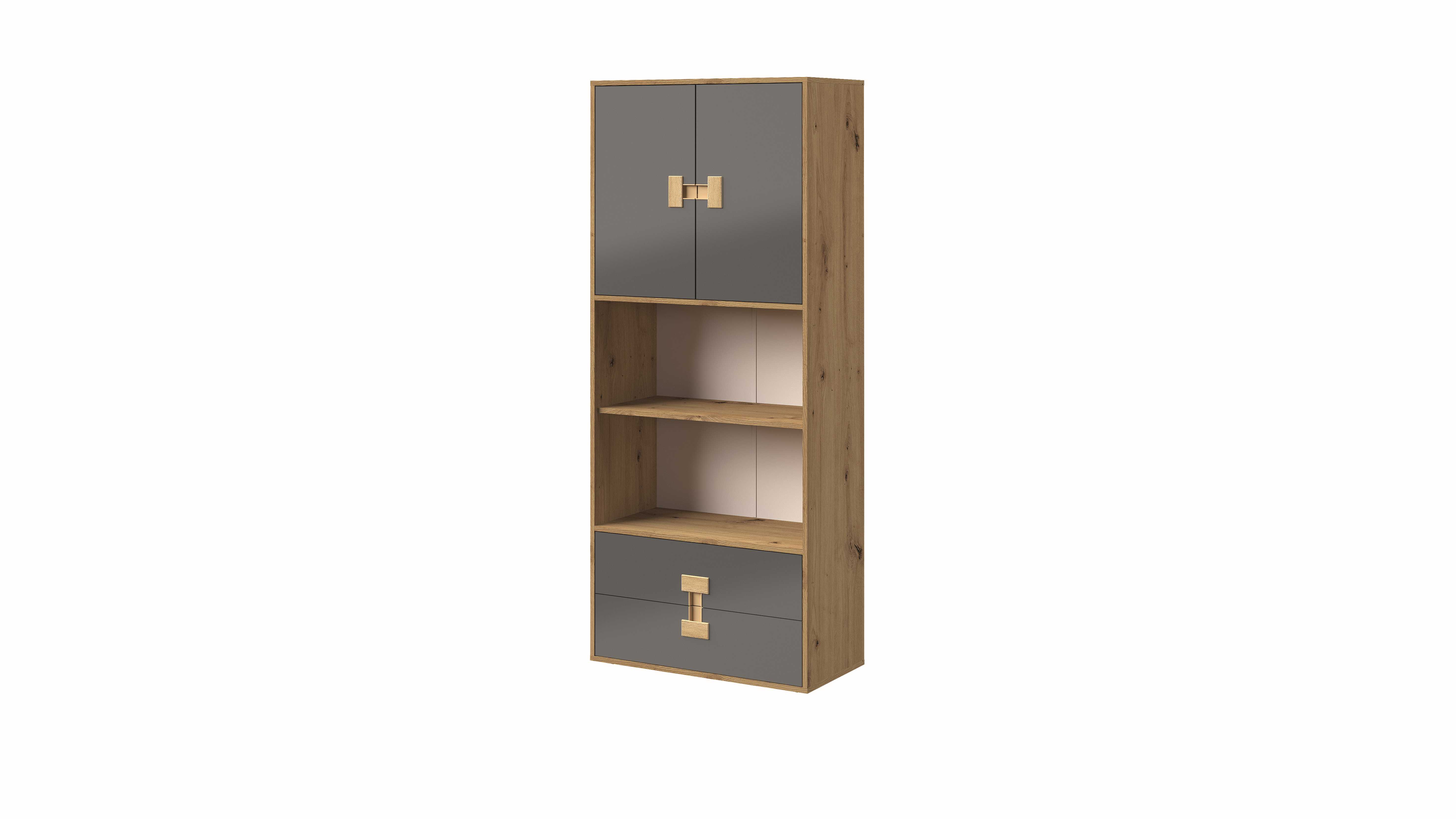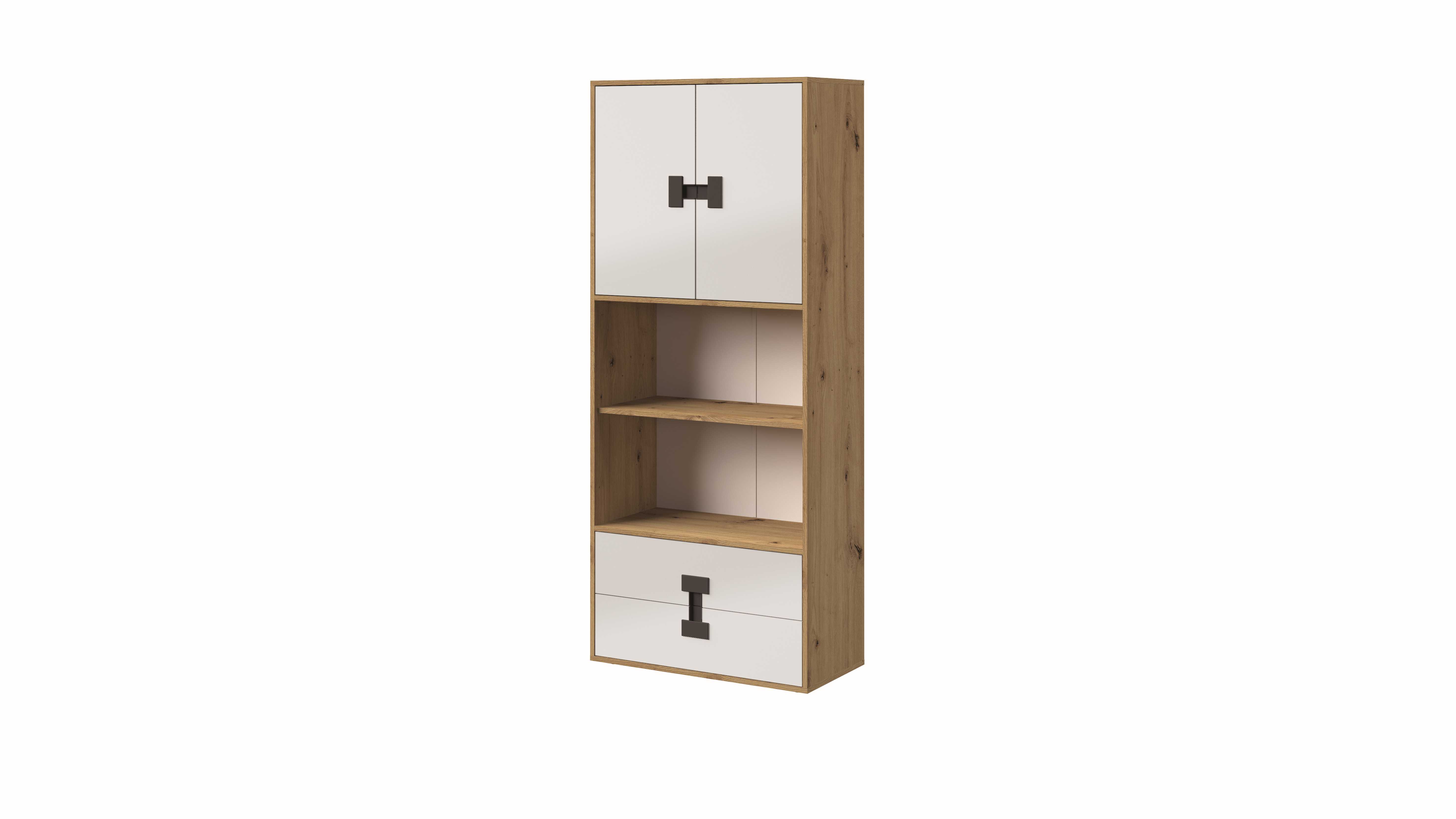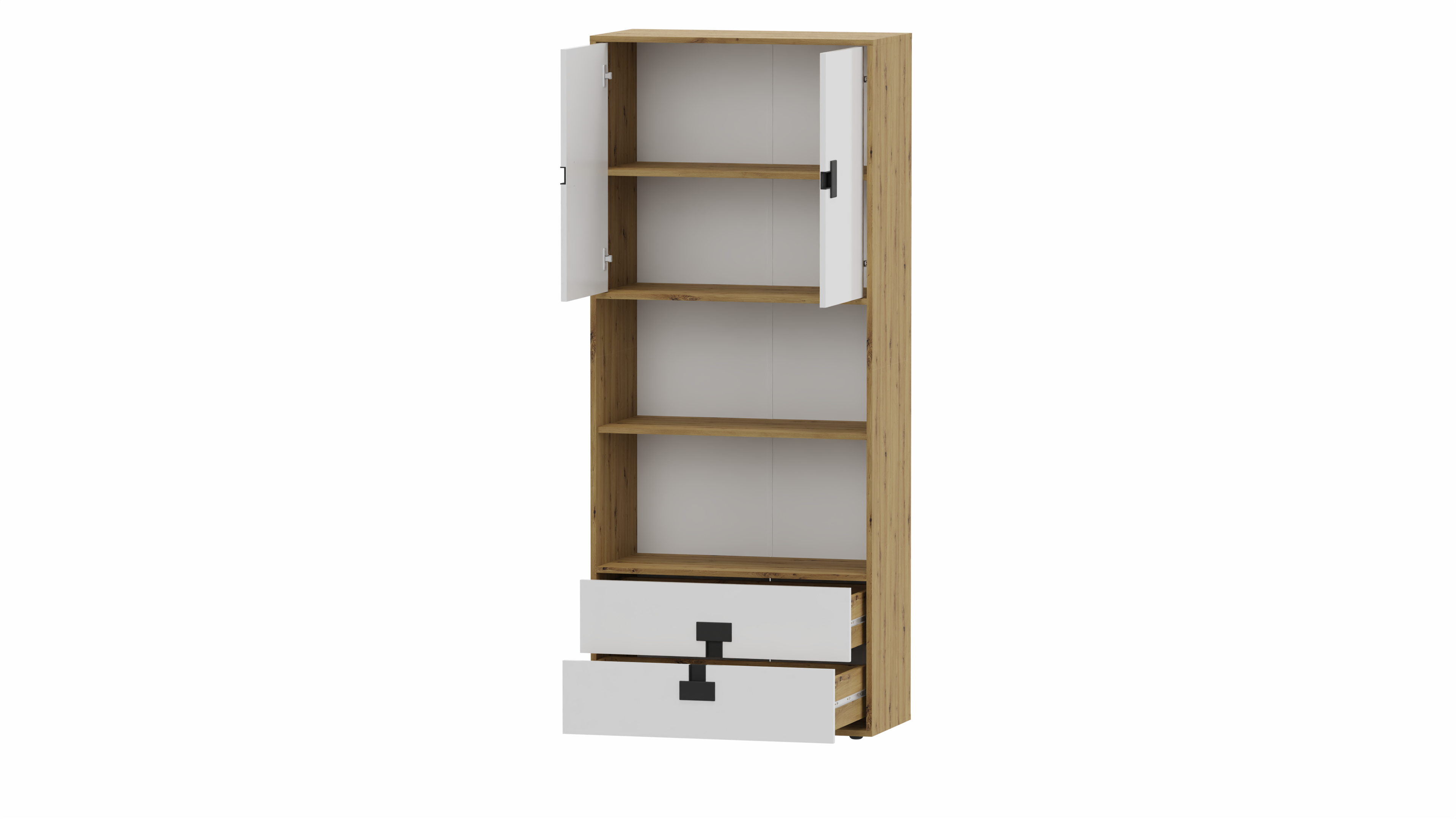 Knihovna 80 Inex 05 nabízí praktický úložný prostor v kombinaci s otevřenými policemi pro vystavení knih nebo dekorací. Horní a dolní část poskytují kryté úložné plochy, zatímco střední police umožňují snadný přístup k často používaným věcem. Tento kus nábytku je ideální do každého interiéru, kde potřebujete funkční a stylový úložný prostor.
