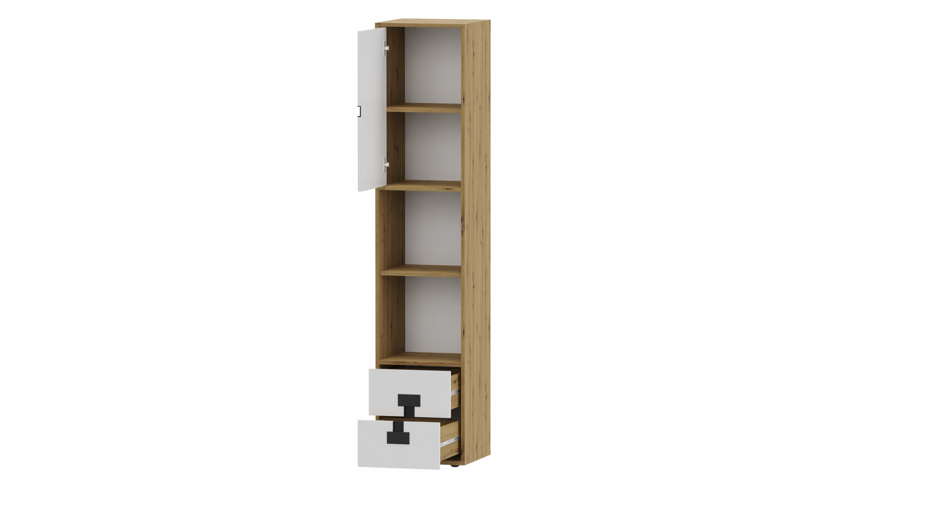 Dětská sestava Inex kombinuje moderní design s praktickými funkcemi, které zajistí pohodlí a organizaci v dětském nebo studentském pokoji. Elegantní provedení v kombinaci přírodního dekoru dubu a kontrastních barevných prvků, jako je bílá a šedá, dodává nábytku svěží a stylový vzhled. Sestava je vyrobena z kvalitních laminovaných desek s ABS hranami, což zajišťuje vysokou odolnost a dlouhou životnost. Nabízí dostatek úložného prostoru díky promyšleně navrženým skříním, policím a zásuvkám, které jsou ideální pro ukládání oblečení, knih i hraček. Tento nábytek je perfektní volbou pro chlapce i dívky, a jeho nadčasový design skvěle doplní každý interiér.