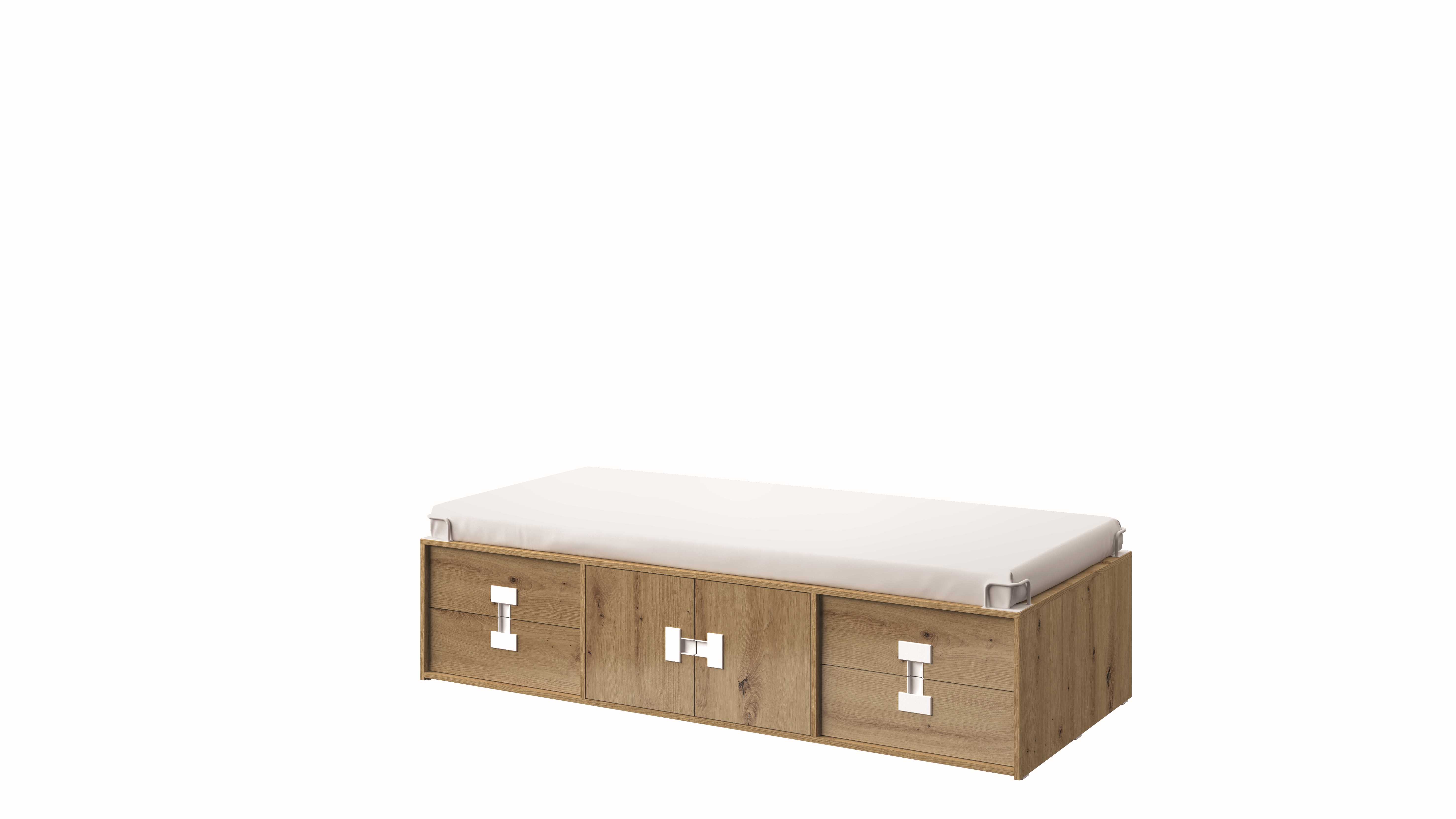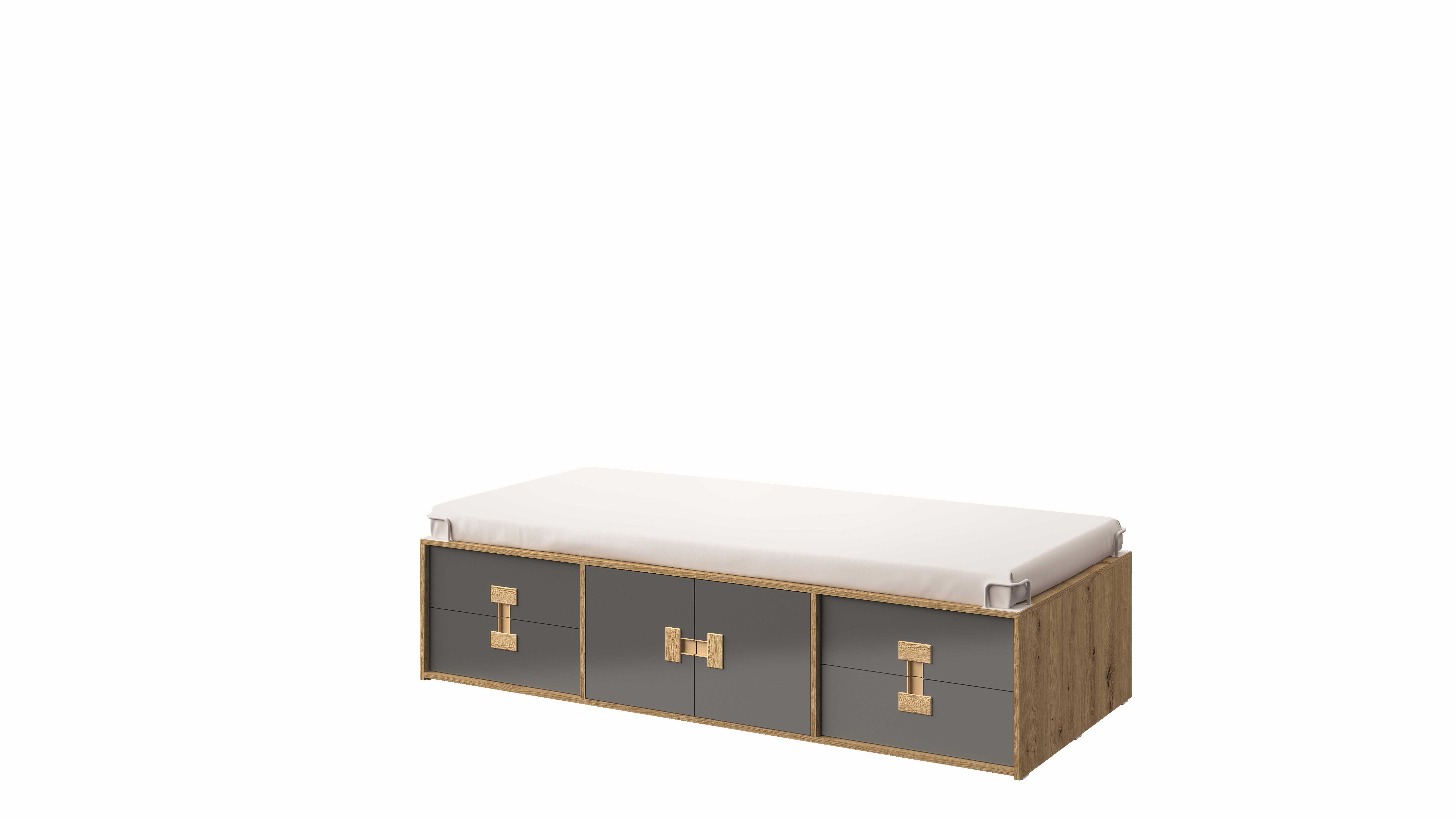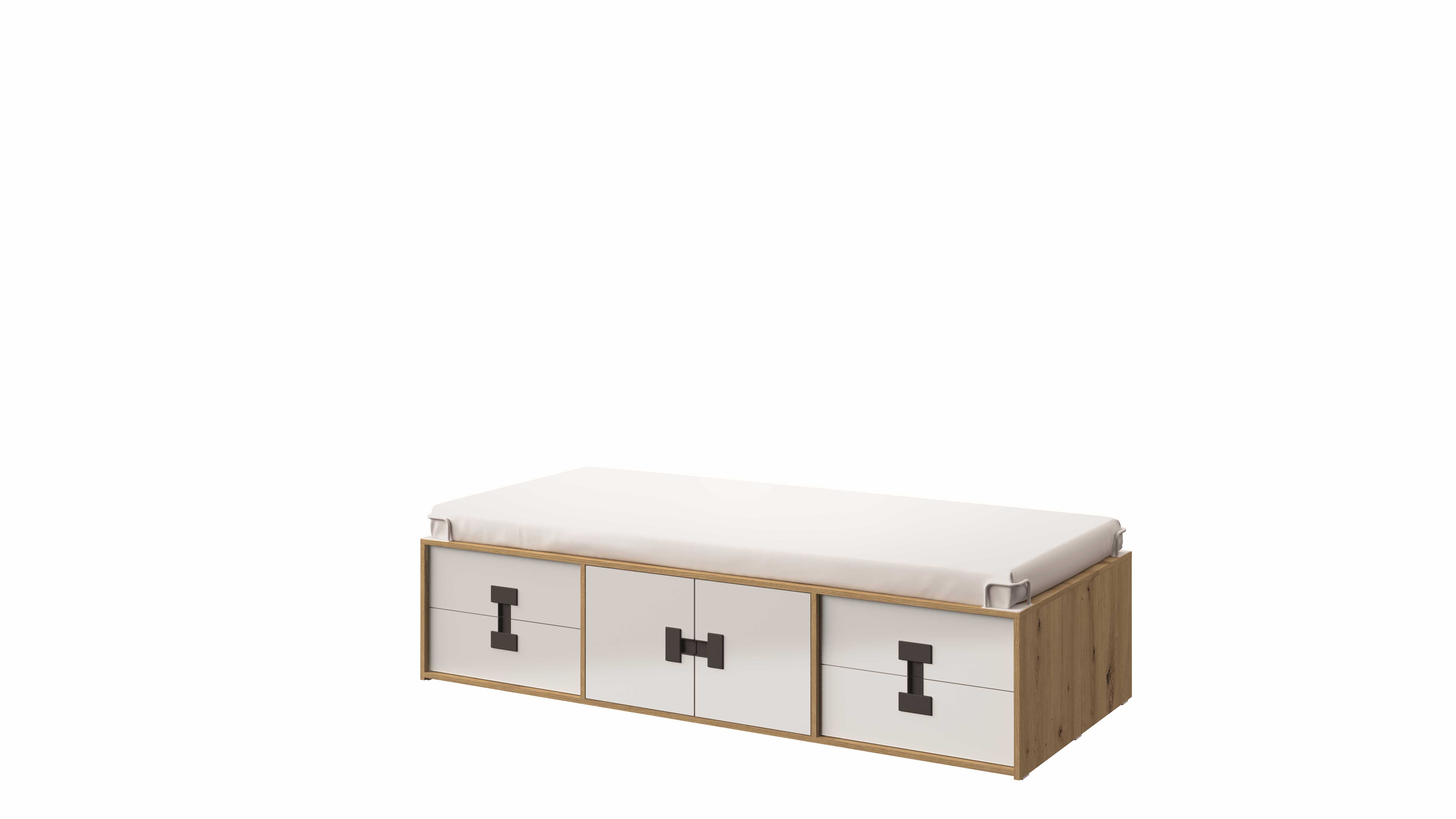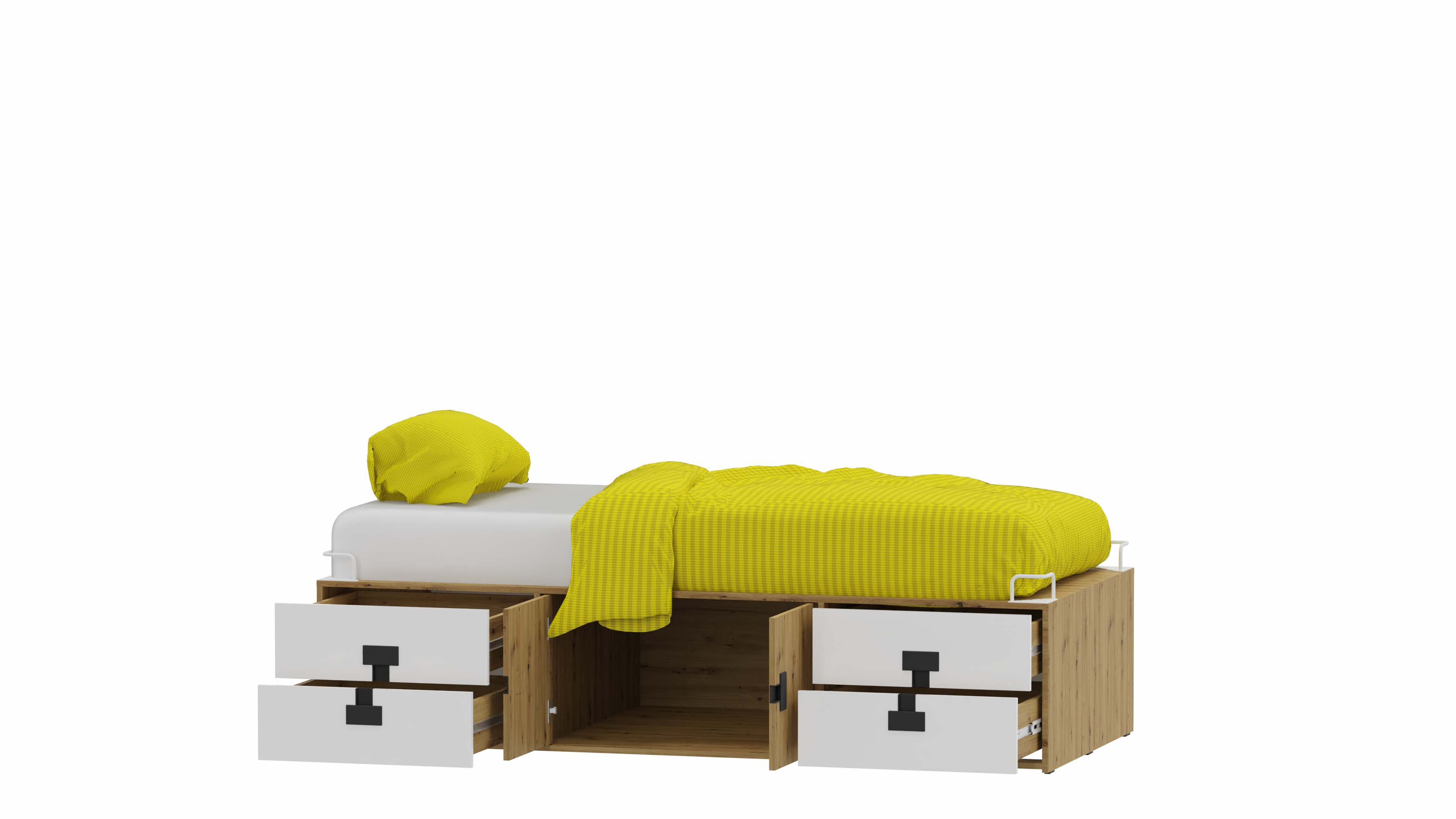 Vysoká postel Inex 15 kombinuje komfort spánku s praktickým úložným prostorem ve formě zásuvek a skříněk umístěných pod lůžkem. Tato postel je ideálním řešením pro ty, kteří potřebují maximálně využít prostor v pokoji.