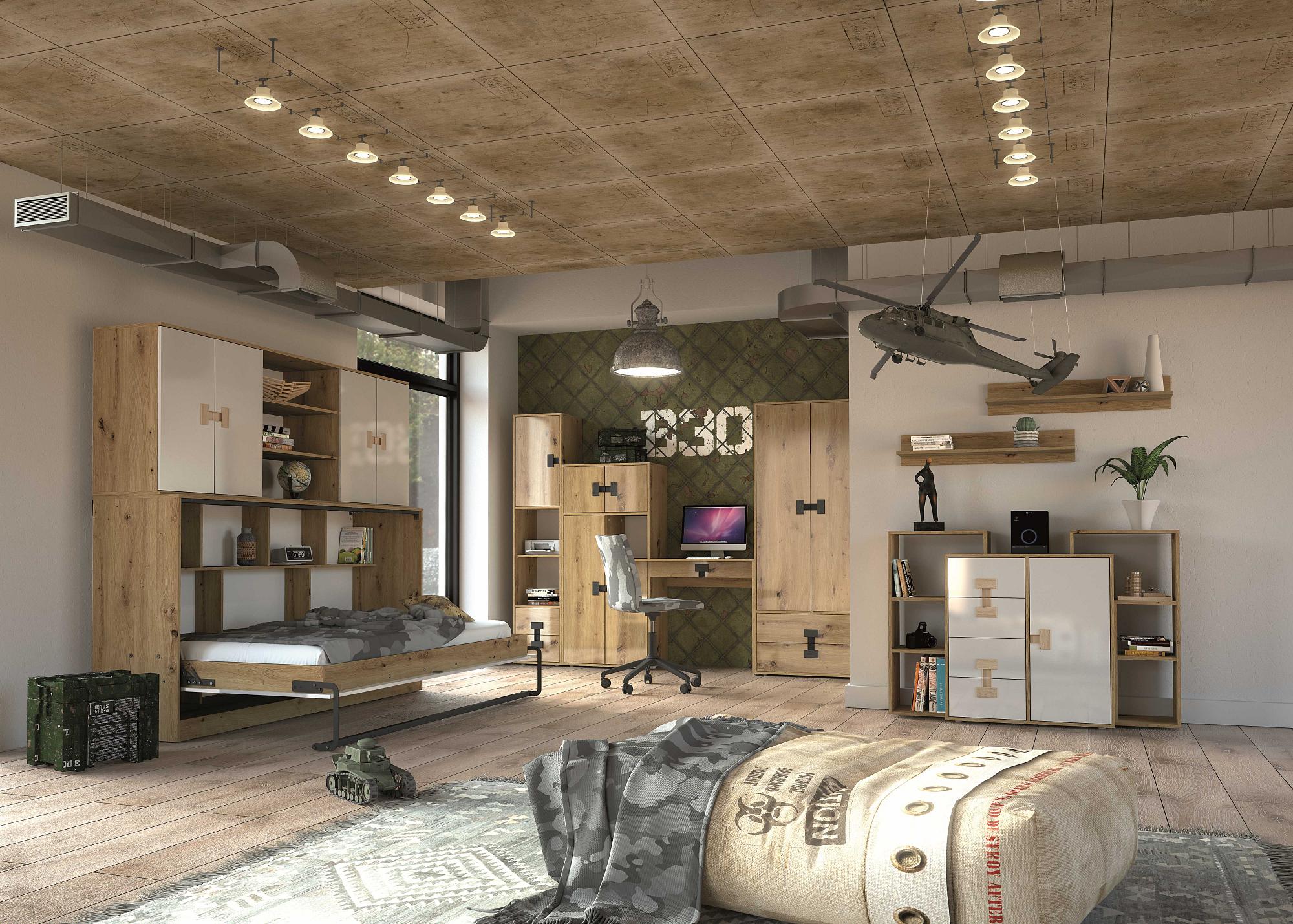 Dětská sestava Inex kombinuje moderní design s praktickými funkcemi, které zajistí pohodlí a organizaci v dětském nebo studentském pokoji. Elegantní provedení v kombinaci přírodního dekoru dubu a kontrastních barevných prvků, jako je bílá a šedá, dodává nábytku svěží a stylový vzhled. Sestava je vyrobena z kvalitních laminovaných desek s ABS hranami, což zajišťuje vysokou odolnost a dlouhou životnost. Nabízí dostatek úložného prostoru díky promyšleně navrženým skříním, policím a zásuvkám, které jsou ideální pro ukládání oblečení, knih i hraček. Tento nábytek je perfektní volbou pro chlapce i dívky, a jeho nadčasový design skvěle doplní každý interiér.