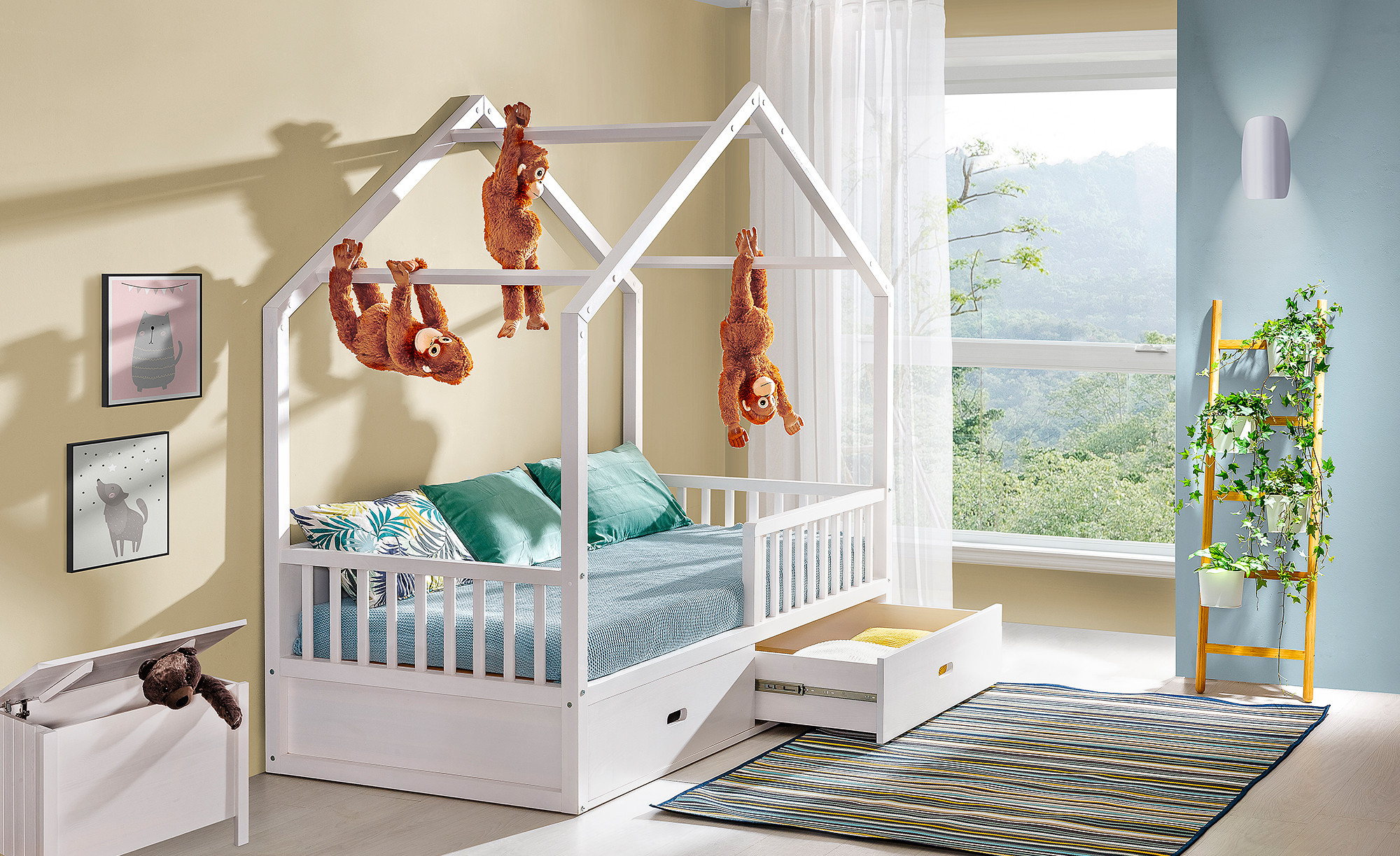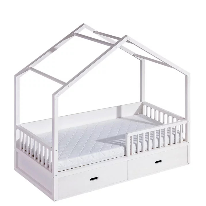 Dětská postel DOMEK je kreativní a praktické řešení pro dětský pokoj. Rám ve tvaru domku poskytuje prostor pro fantazii dítěte a vytváří útulné místo na spaní. Postel je vybavena zábranami pro větší bezpečnost a úložným prostorem, který nabízí dostatek místa pro hračky nebo ložní prádlo. Matrace není součástí. Postel vyrobena z masivu.
