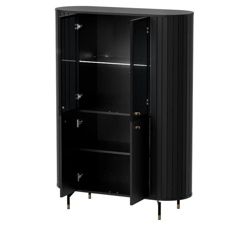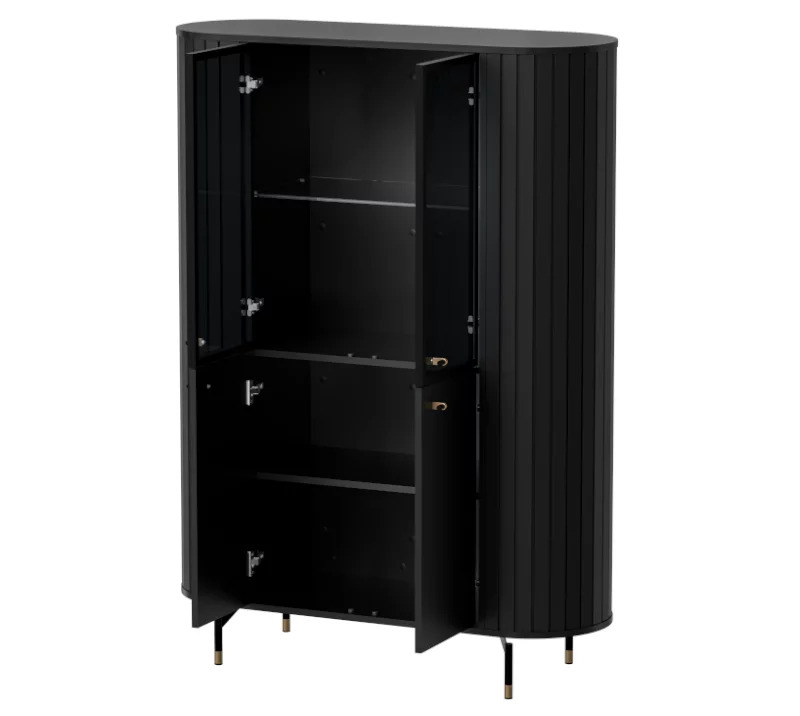 Sestava Zante se vyznačuje moderním designem a kvalitním zpracováním. Tloušťka použitých desek je 16 mm, s odolnými ABS hranami, které zajišťují dlouhou životnost. Elegantní kovové nožky a úchytky dodávají nábytku stylový vzhled. K dispozici jsou dvě barevné varianty – černý mat nebo jemný odstín kašmíru, které snadno zapadnou do různých interiérů. Sestava Zante je ideální volbou pro ty, kteří hledají nadčasovou eleganci a funkčnost pro svůj obývací pokoj nebo jídelnu.