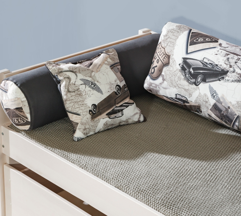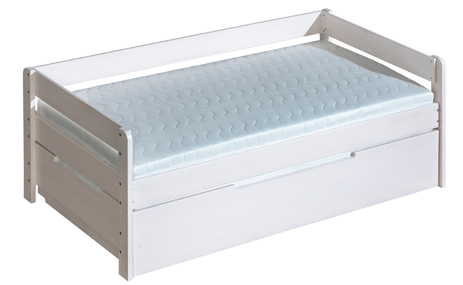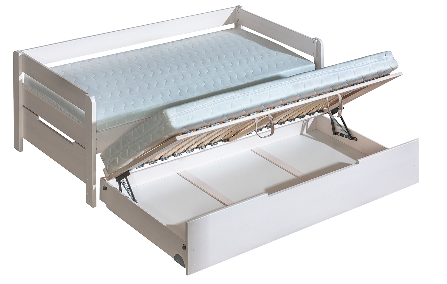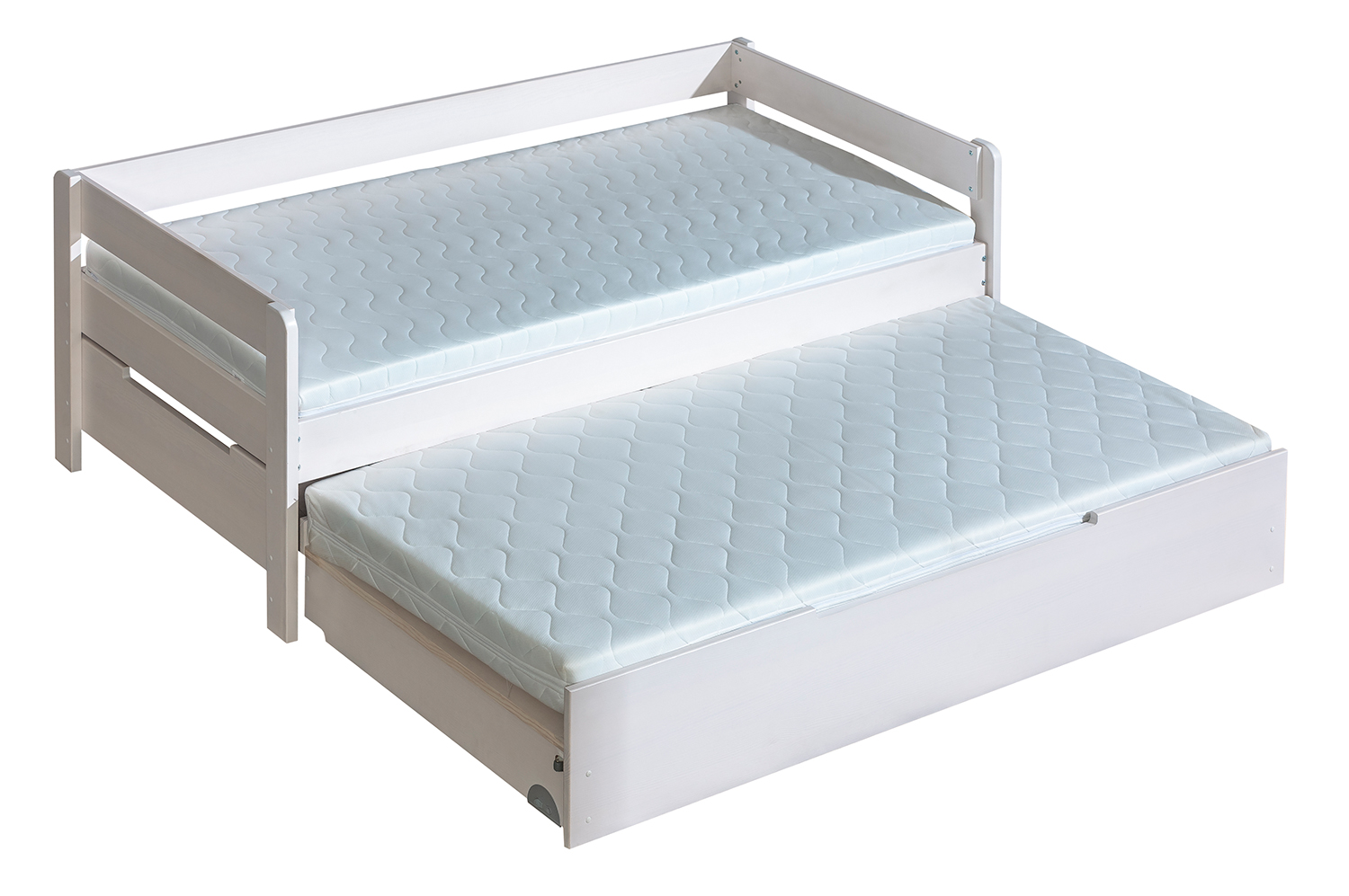 Dětská dřevěná postel BORDA s výsuvnou přistýlkou a úložným prostorem je praktická postel s výsuvným úložným prostorem, ideální pro menší prostory. Vyrobeno z masivu, zajišťuje dlouhou životnost a odolnost. Postel disponuje vyklápěcím mechanismem a možností přidání přídavného lůžka, což je ideální pro sourozence nebo návštěvy. V ceně postele je kvalitní masivní rošt, a pro vyšší bezpečnost má postel zaoblené hrany. Polštáře jsou zdarma a doporučená velikost horní matrace je 90×200 cm, rozměry spodní matrace 197x90 cm a výška spodní matrace maximálně 8 cm.