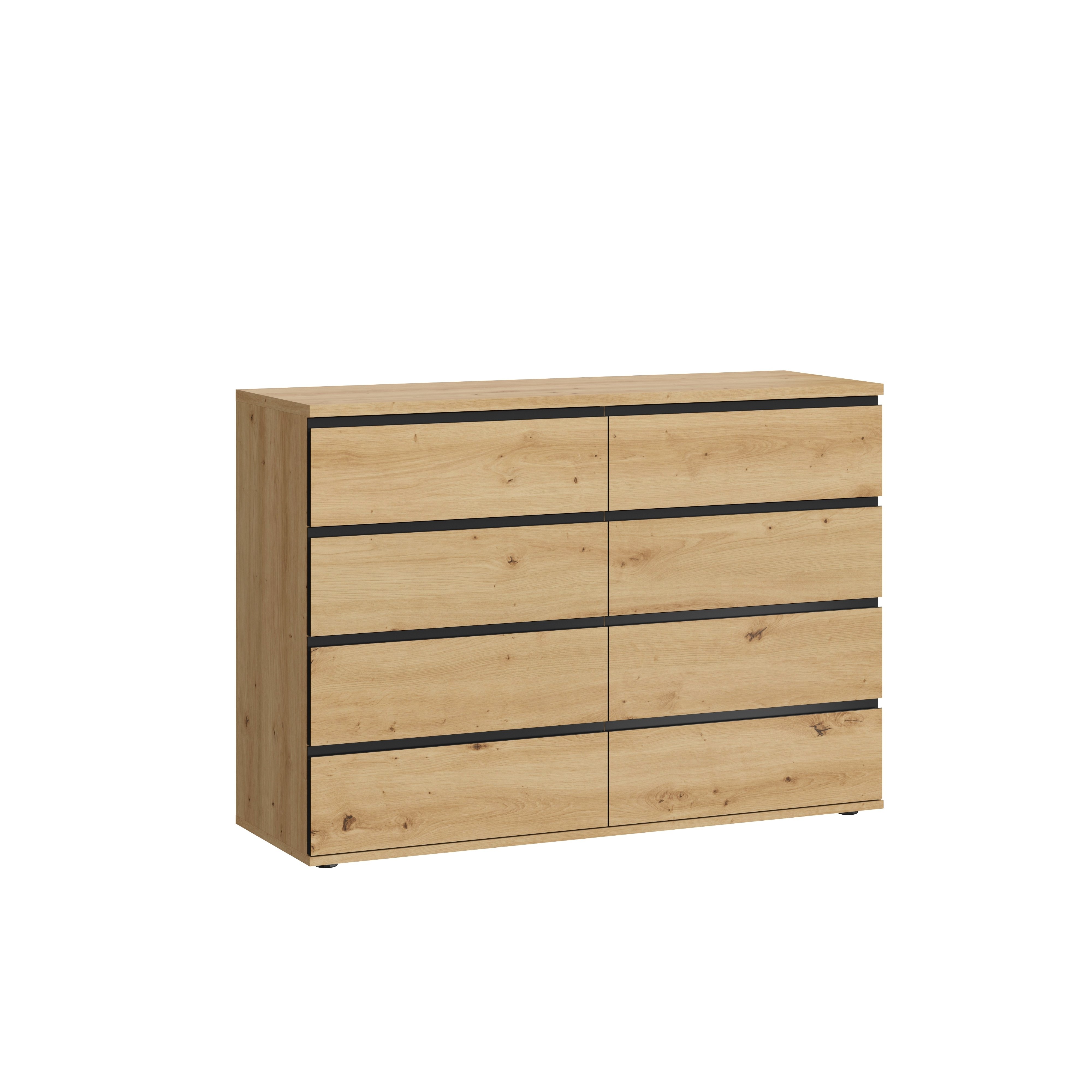 Komoda 03 NOXAL je ideální volbou pro ty, kteří hledají prostorný úložný prostor s moderním vzhledem. S osmi zásuvkami poskytuje dostatek místa pro uspořádání všech vašich věcí. Její přírodní dekor a čisté linie z ní činí stylový a praktický doplněk do každého interiéru.