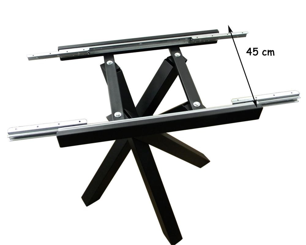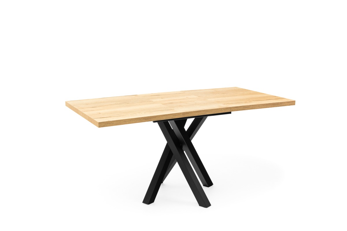 Rozkládací jídelní stůl Dady je moderní a stylový doplněk do každé jídelny. Jeho robustní deska přináší přírodní vzhled, zatímco kovová noha ve tvaru X dodává stolu industriální nádech a stabilitu. Možnost rozložení stolu vám umožní snadno přizpůsobit prostor pro více hostů.