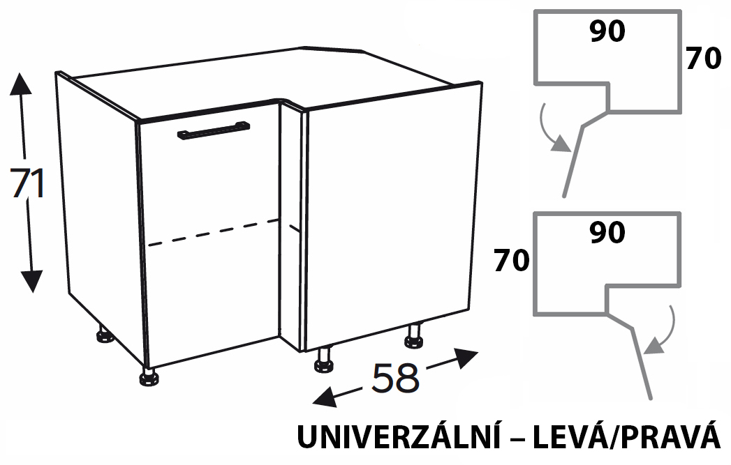 - lze sestavit jako pravá (90×70) nebo jako levá (70×90)