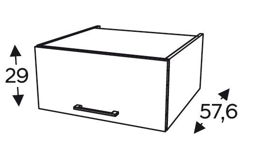 • Hluboká horní skříňka určena pro montáž nad vysoké potravinové skříně (spíže)