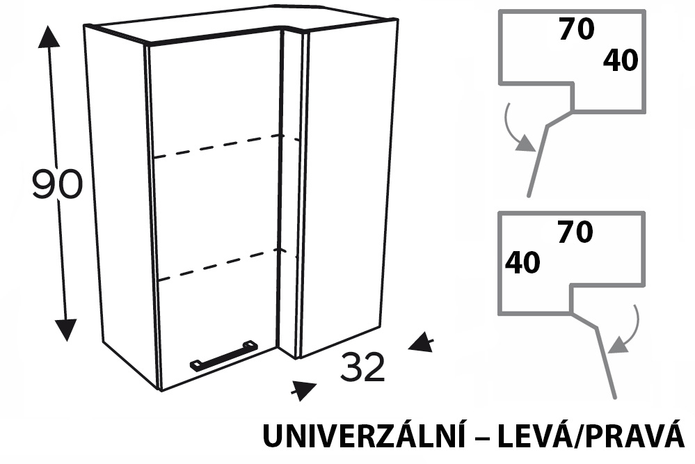 - lze sestavit jako pravá (70×40) nebo jako levá (40×70)