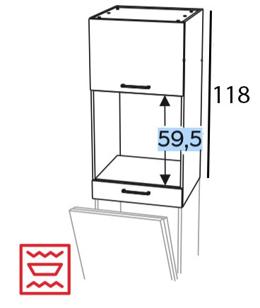 - Skříňka se instaluje nad pračku nebo myčku a umístí se do ní trouba.