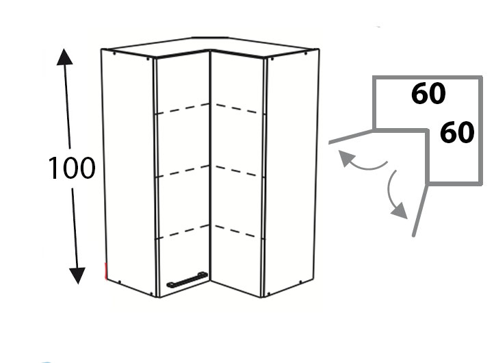Rohová skříňka s výškou 100 cm se používá v případě, že nad sebe skládáte skříňky s výškou 71 cm a 29 cm a potřebujete rohovou kuchyni.