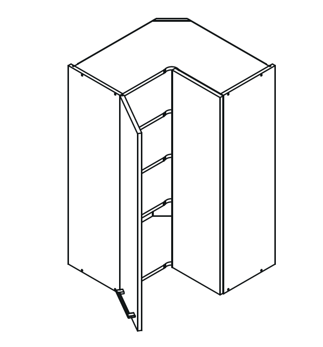 Rohová skříňka s výškou 100 cm se používá v případě, že nad sebe skládáte skříňky s výškou 71 cm a 29 cm a potřebujete rohovou kuchyni.