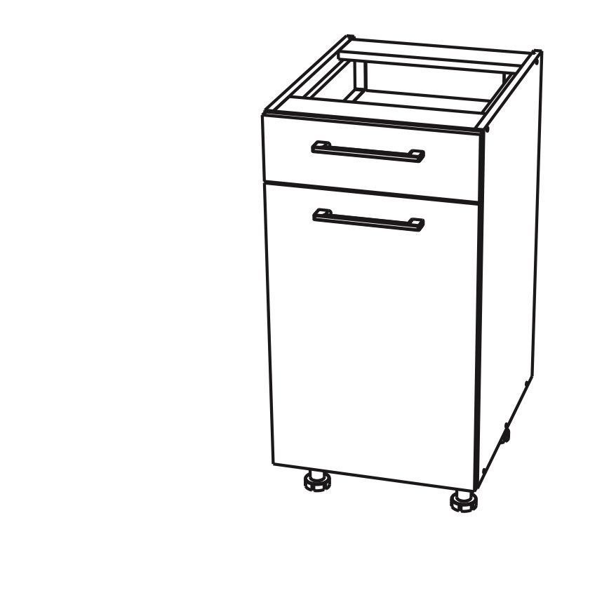Výška nezahrnuje nožky (10 nebo 15 cm) a pracovní desku.
