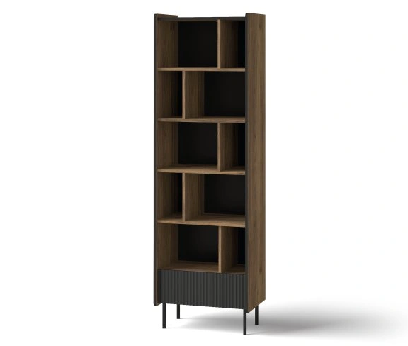 Prestigo P10 je moderní knihovna s otevřenými policemi a jedinečným designem, který kombinuje tmavé dřevěné tóny s černými prvky. Nabízí dostatek prostoru pro vystavení knih, dekorací nebo jiných předmětů, a skvěle doplní interiér obývacího pokoje či pracovny.