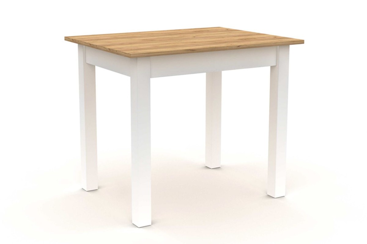 Jídelní stůl Leana vyniká elegantním designem, kombinujícím bílou konstrukci s deskou v přírodním dekoru dřeva. Ideální volba pro menší prostory, která přidá svěžest a styl do každé jídelny.