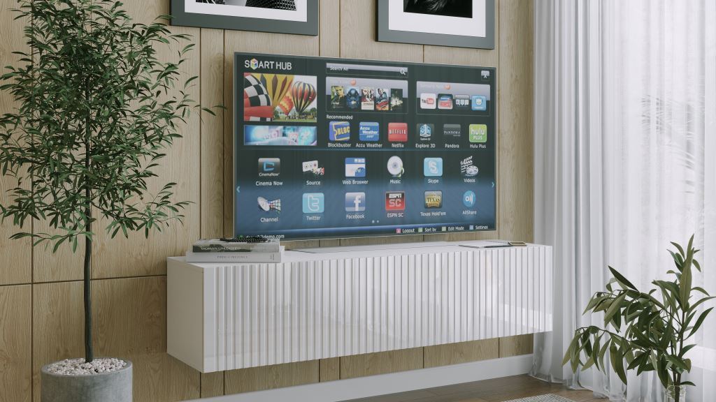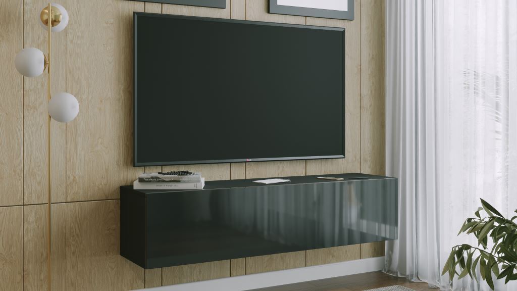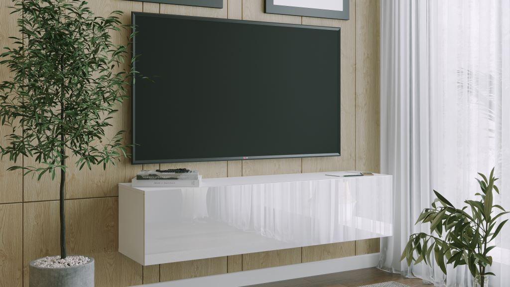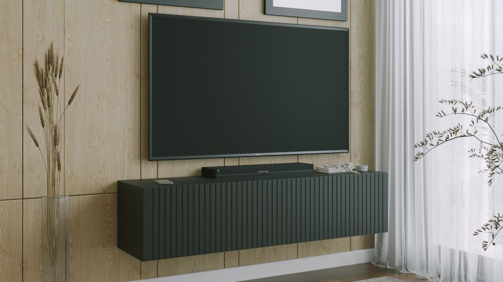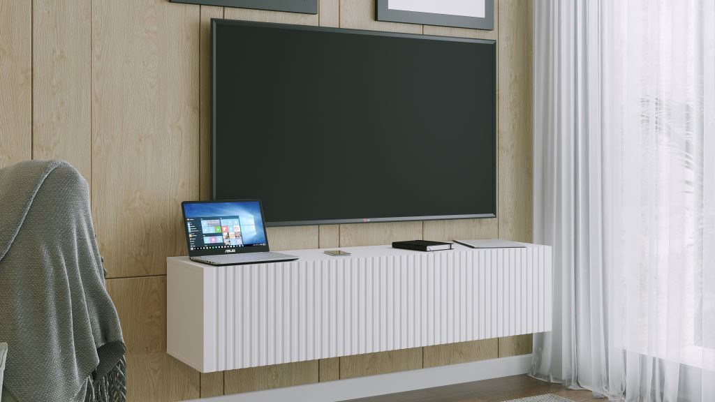 TV stolek JOHNY kombinuje moderní design a praktickou funkčnost. Díky minimalistickému vzhledu s čistými liniemi a možností volby matného nebo lesklého povrchu snadno zapadne do jakéhokoliv interiéru. Nabízí dostatek úložného prostoru a jeho zavěšená konstrukce vytváří dojem lehkosti. Šířka žebrování je stejná, není různá.