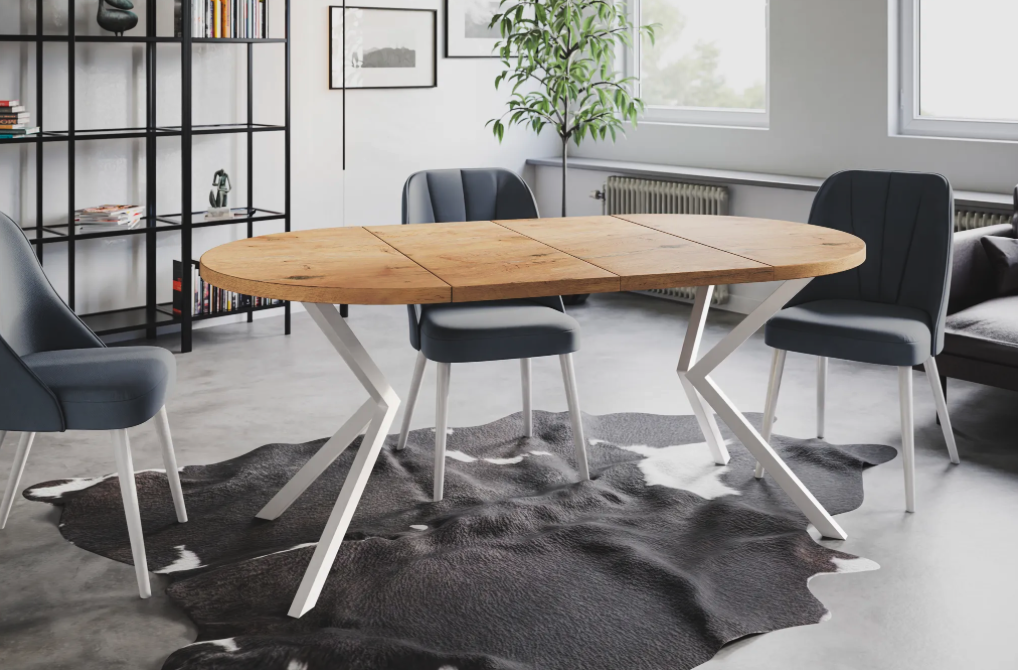 Rozkládací kulatý stůl LOFT LITE zaujme moderním designem a funkčností. Stabilní kovová podnož zajišťuje pevnost, zatímco kulatá deska s možností rozložení nabízí praktické využití v menších i větších prostorách. Ideální pro moderní interiéry, dostupný v několika elegantních barevných kombinacích.