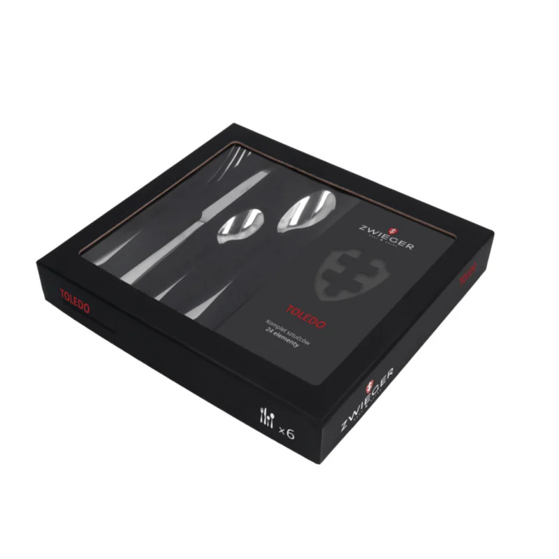 Elegantní sada příborů ZWIEGER TOLEDO pro 6 osob obsahuje 24 dílů, které vynikají unikátním designem a prvotřídním zpracováním. Tato sada zahrnuje nože, vidličky, lžíce a čajové lžičky, vše navržené pro každodenní použití i slavnostní příležitosti. Příbory kombinují moderní estetiku s funkčností, což z nich činí ideální doplněk do každé kuchyně.