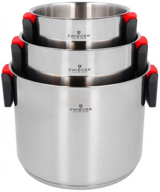 Praktická sada hrnců Zwieger z nerezové oceli s poklicemi z tvrzeného skla je ideálním pomocníkem do každé kuchyně. Tyto hrnce jsou vhodné pro všechny typy sporáků – halogenové, plynové, keramické, elektrické i indukční. Moderní design a kvalitní materiály zaručují snadné vaření a dlouhou životnost.