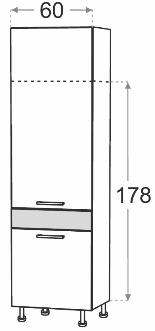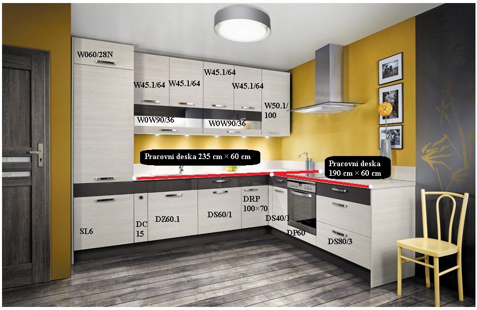 - Hloubka skříněk vč. dvířek: Horní - 32 cm - 60 cm, Dolní - 52 cm