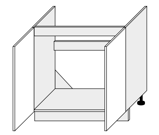 Dřezová skříňka má již z výroby připraven otvor v sololitových zádech pro odpady, atd. Taktéž postrádá poličku. Umístit dřez však můžete do jakékoliv jiné otevírací skříňky s požadovaným rozměrem. Otvor do zad se velice jednoduše vyřízne a polici prostě nepoužijete. Popřípadě si ji upravíte podle potřeby tak, aby šla použít.