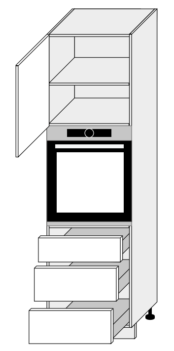 Korpusy skříněk jsou vyrobené z kvalitní LTD desky o tloušťce 18 mm ( s ABS 0,5 mm). Záda jsou z bílého sololitu a vnitřní police mají nosnost 15-25 kg. Kování BLUM nebo Hettich s doživotní zárukou (úchytky, kování a sokly jsou v ceně) a všechna dvířka i zásuvky disponují systémem tlumeného dovírání (kromě zásuvek Blum METABOX). Skříňky stojí na nastavitelných nožkách o výšce 10 nebo 15 cm.