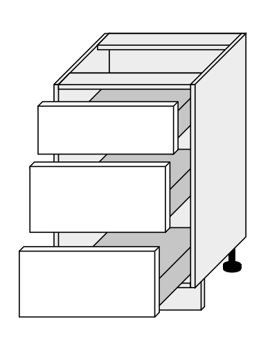 Korpusy skříněk jsou vyrobené z kvalitní LTD desky o tloušťce 18 mm ( s ABS 0,5 mm). Záda jsou z bílého sololitu a vnitřní police mají nosnost 15-25 kg. Kování BLUM nebo Hettich s doživotní zárukou (úchytky, kování a sokly jsou v ceně) a všechna dvířka i zásuvky disponují systémem tlumeného dovírání (kromě zásuvek Blum METABOX). Skříňky stojí na nastavitelných nožkách o výšce 10 nebo 15 cm.