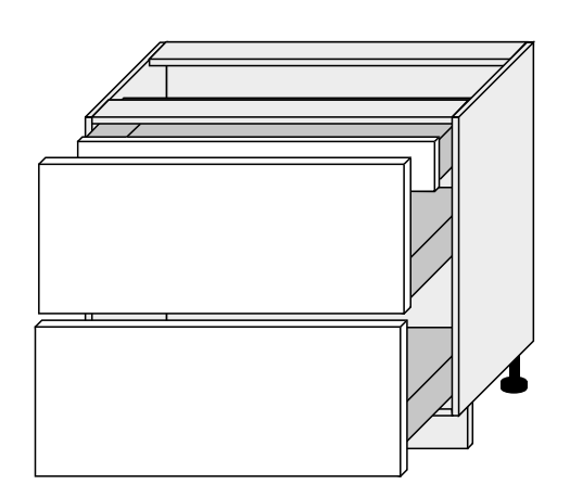 Korpusy skříněk jsou vyrobené z kvalitní LTD desky o tloušťce 18 mm ( s ABS 0,5 mm). Záda jsou z bílého sololitu a vnitřní police mají nosnost 15-25 kg. Kování BLUM nebo Hettich s doživotní zárukou (úchytky, kování a sokly jsou v ceně) a všechna dvířka i zásuvky disponují systémem tlumeného dovírání (kromě zásuvek Blum METABOX). Skříňky stojí na nastavitelných nožkách o výšce 10 nebo 15 cm.
