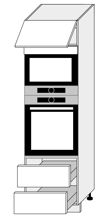 Korpusy skříněk jsou vyrobené z kvalitní LTD desky o tloušťce 18 mm ( s ABS 0,5 mm). Záda jsou z bílého sololitu a vnitřní police mají nosnost 15-25 kg. Kování BLUM nebo Hettich s doživotní zárukou (úchytky, kování a sokly jsou v ceně) a všechna dvířka i zásuvky disponují systémem tlumeného dovírání (kromě zásuvek Blum METABOX). Skříňky stojí na nastavitelných nožkách o výšce 10 nebo 15 cm.